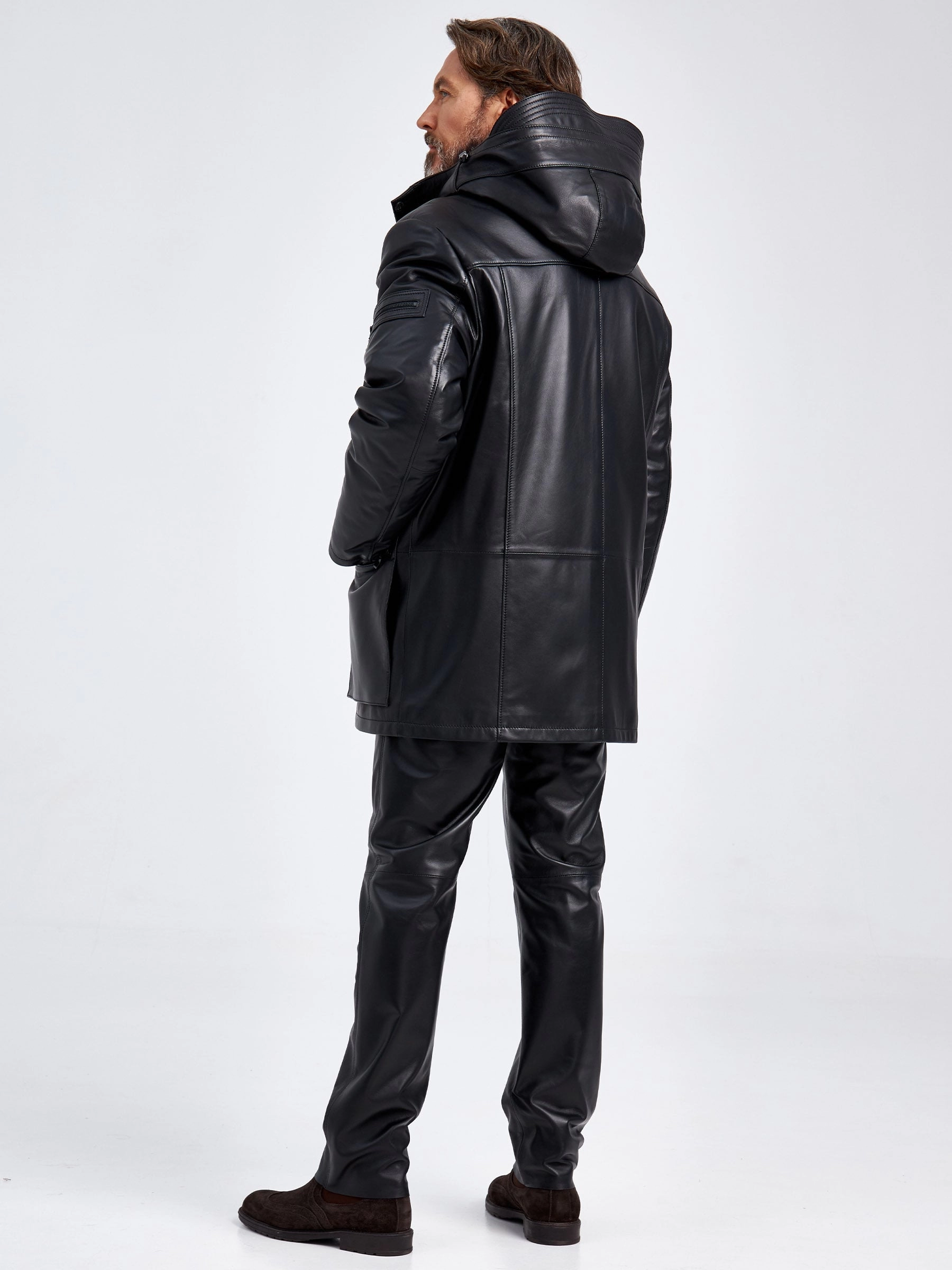 Зимняя мужская кожаная куртка на подкладке из овчины премиум класса 513мех, черная, размер 54, артикул 41740