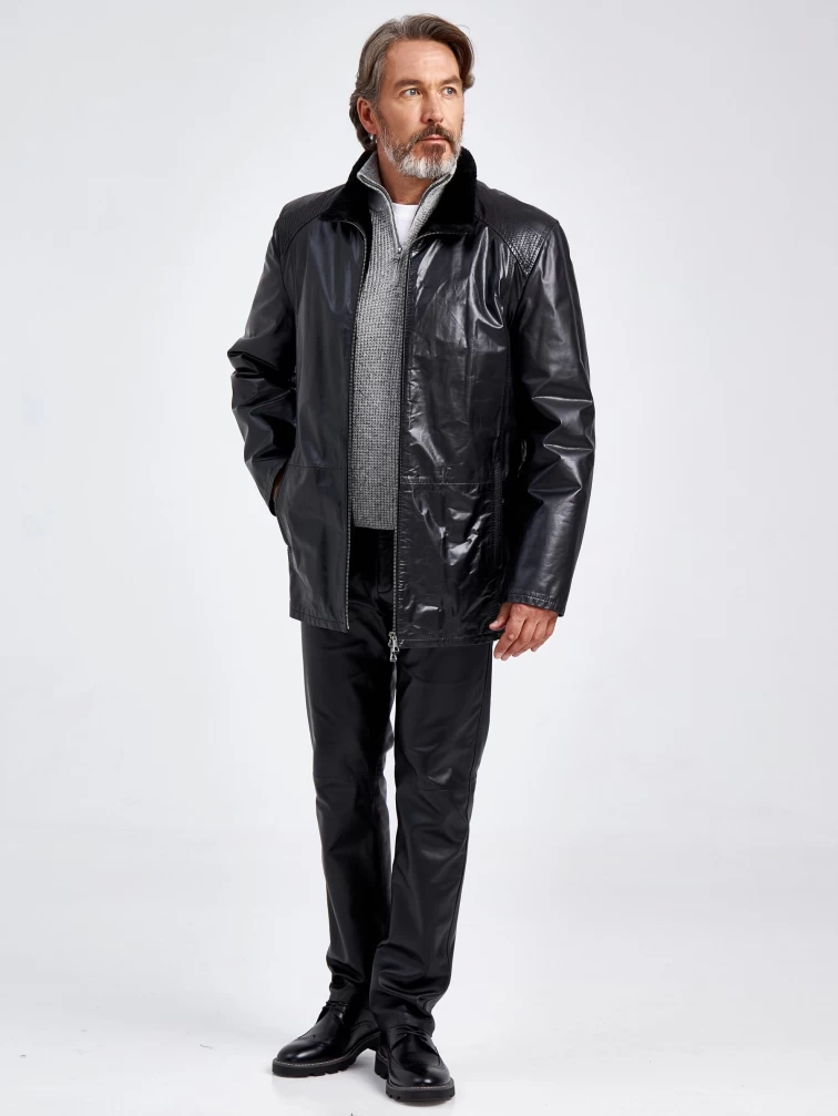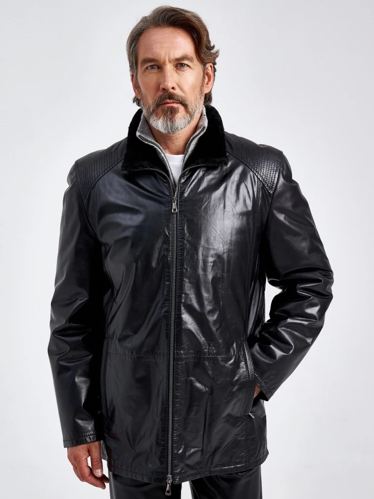 Зимняя мужская кожаная куртка на подкладке из овчины 5252, черная, размер 52, артикул 40600