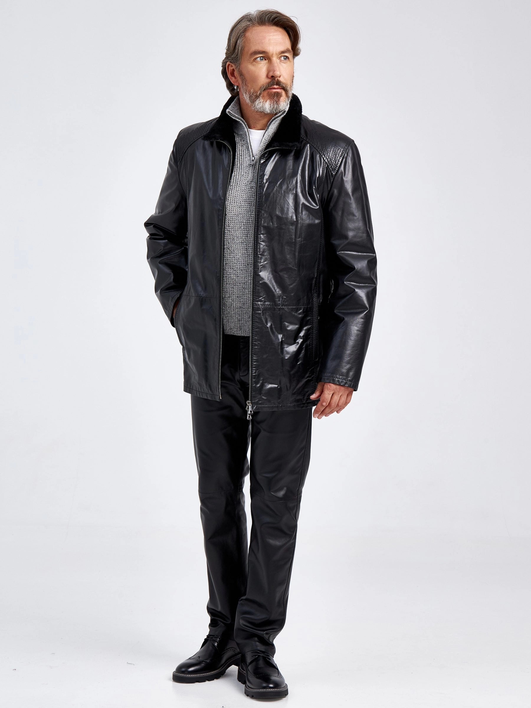 Классическая кожаная куртка. Меховая подкладка из тонкорунной мериносной овчины. Воротник-стойка. Удобные наружные и внутренние карманы на молниях. Прекрасная свобода движений. Великолепное сочетание как с кожаными джинсами, так и с классическими брюками.