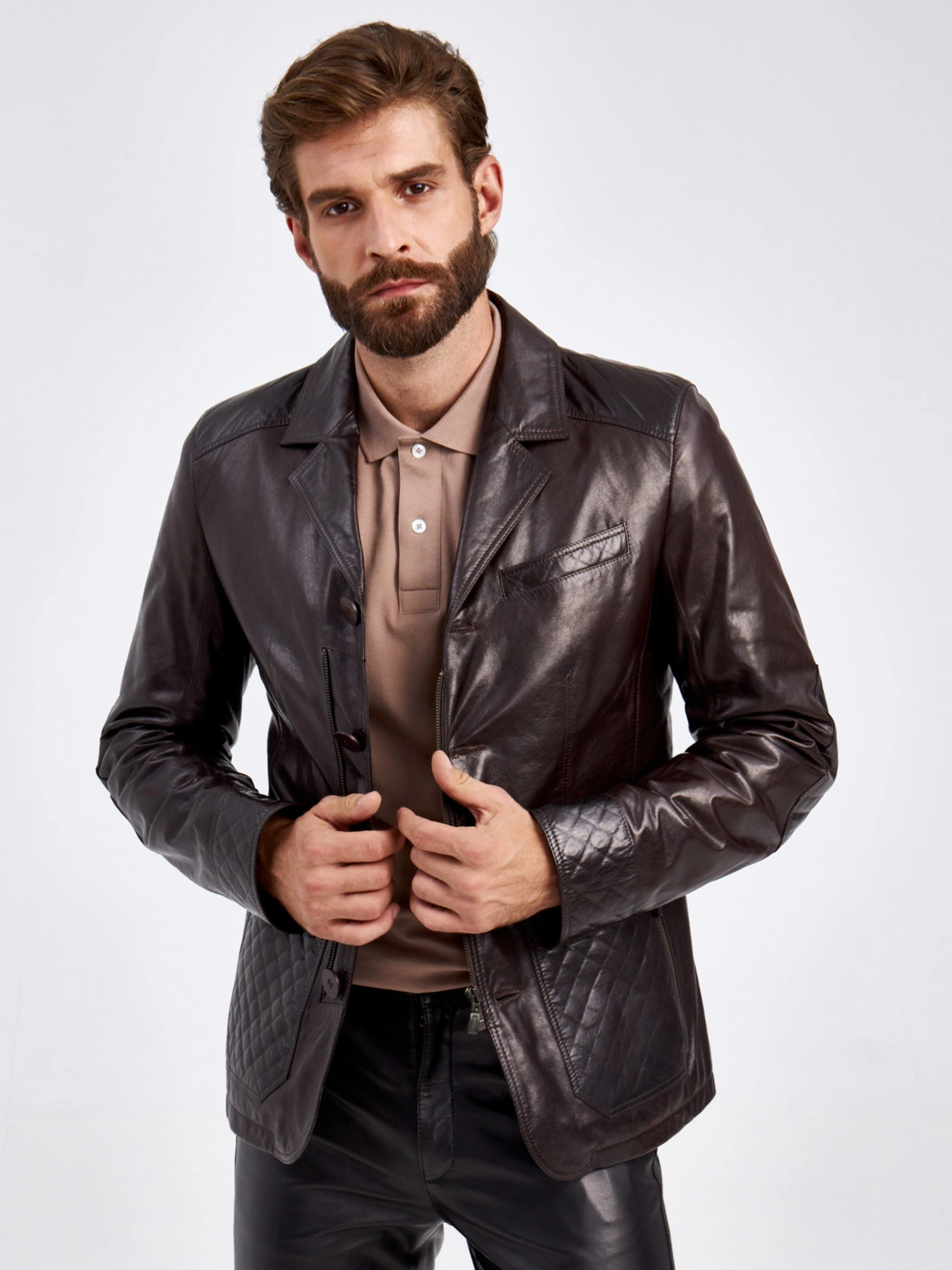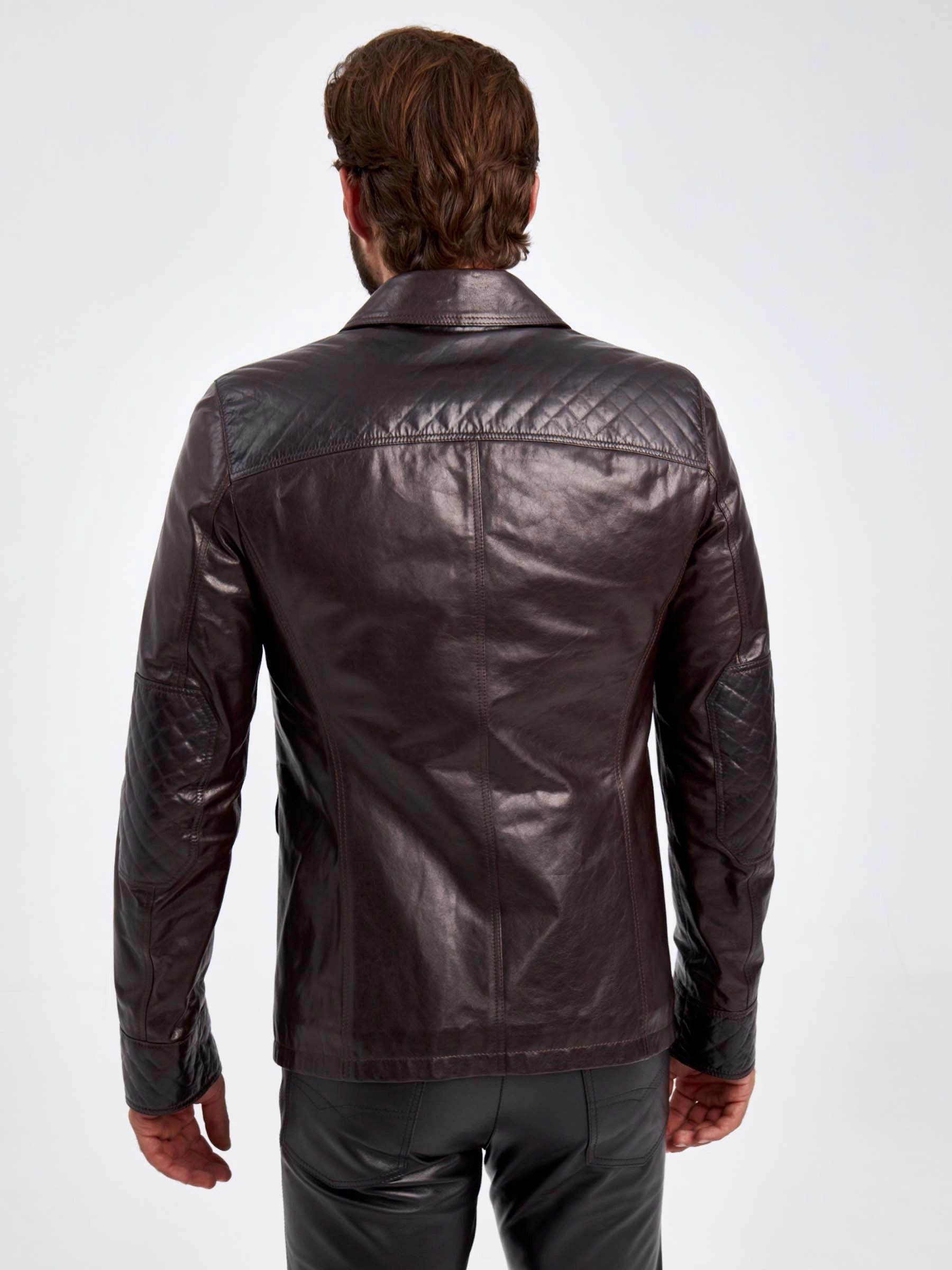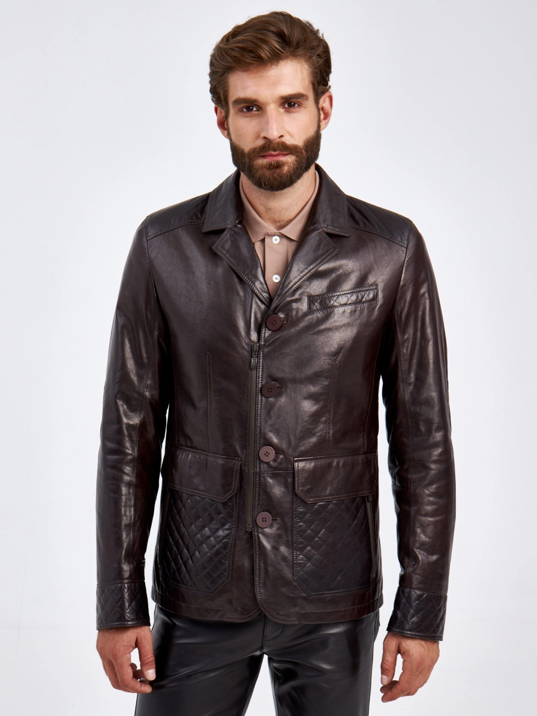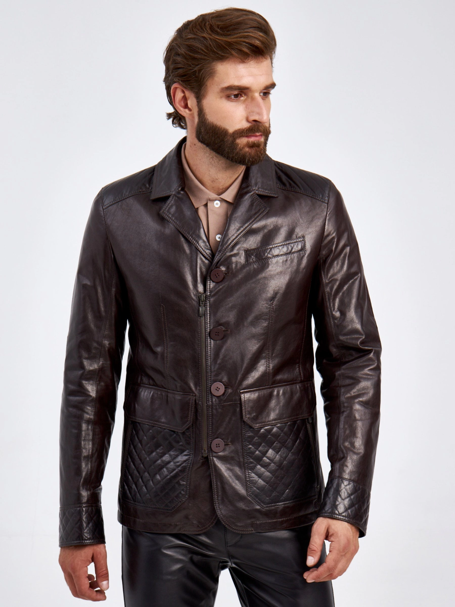 Утепленный мужской кожаный пиджак 530ш, коричневая, размер 50, артикул 29130