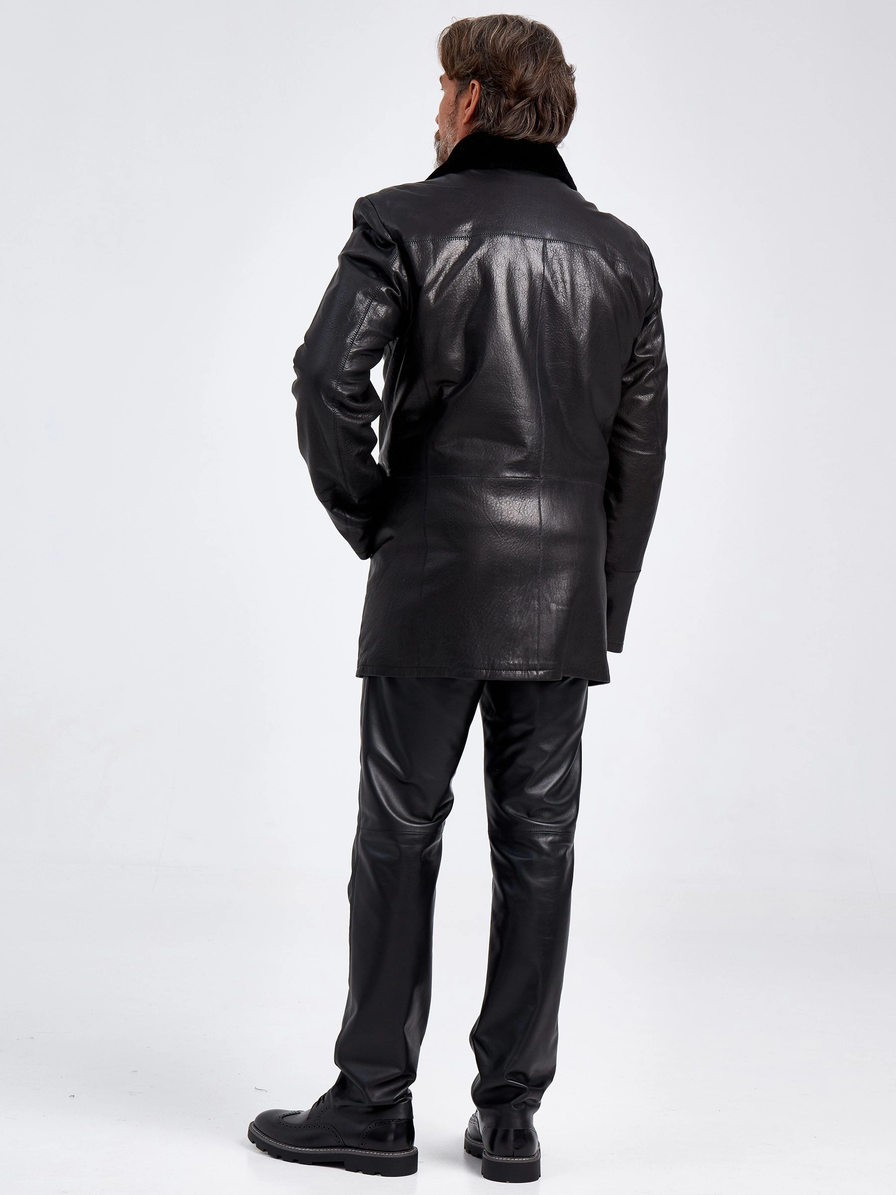 Зимняя мужская кожаная куртка на подкладке из овчины 5358, черная, размер 46, артикул 40630