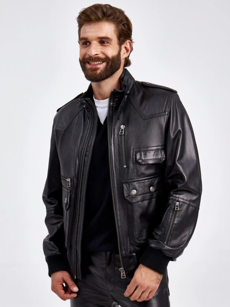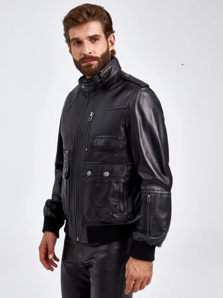 Эта куртка для мужчин, которые любят не только кожаные изделия, но и ценят их функционал и комфорт. Мастера Primo Vello сшили модель из гладкой, высококачественной кожи в универсальном черном цвете. Свободный силуэт. Воротник-стойку дополняет кожаный ремешок застегивающейся на кнопку. Застежка-молния. Манжеты и пояс выделили плотной трикотажной резинкой. Изделие завершили множеством карманов абсолютно разной величины и формы. Идеальная посадка.