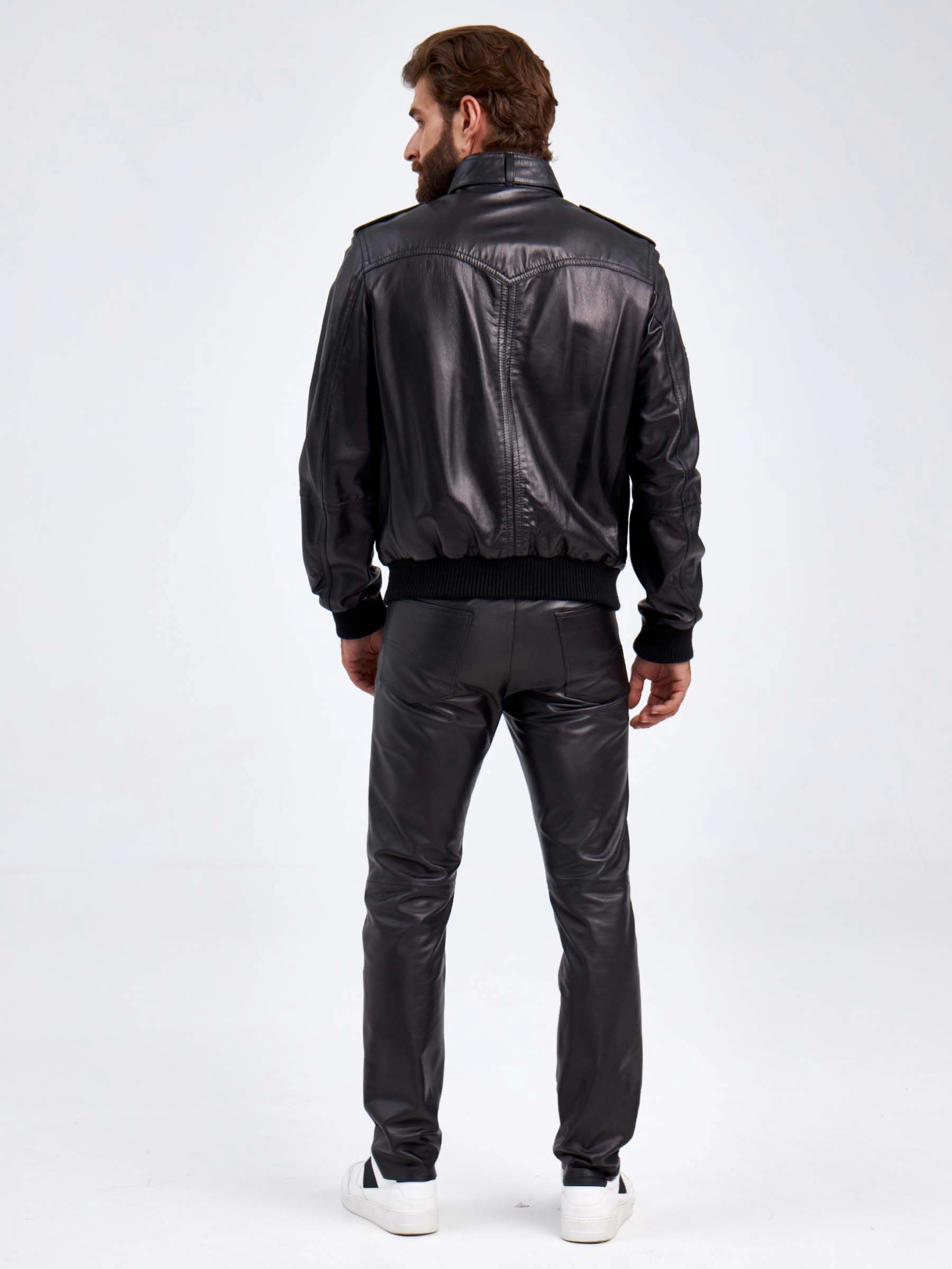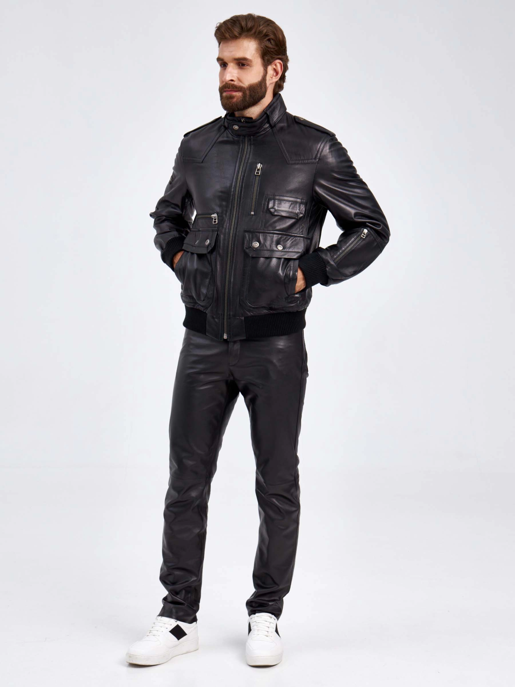Кожаная куртка бомбер мужская Пит, черная, размер 50, артикул 29190