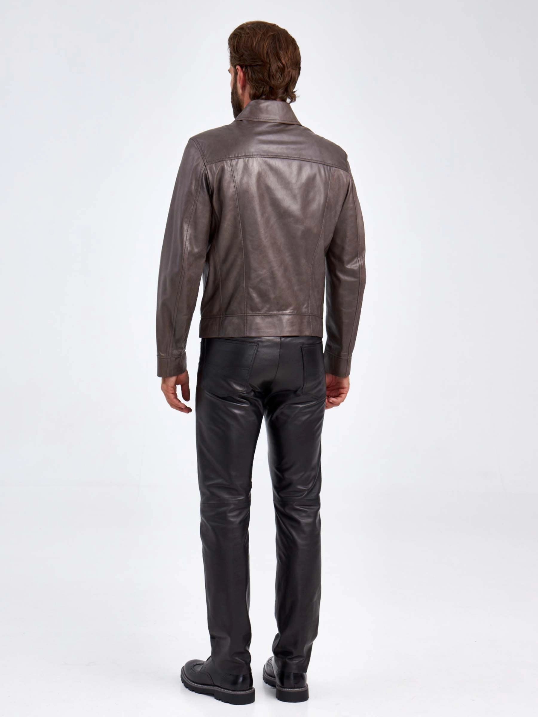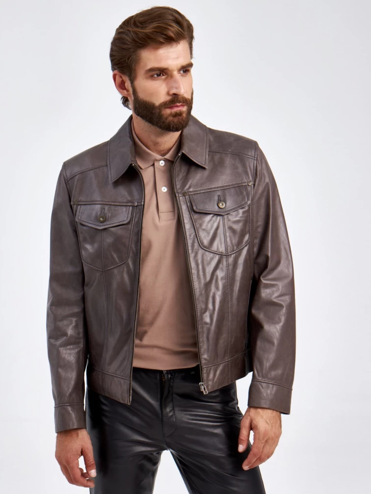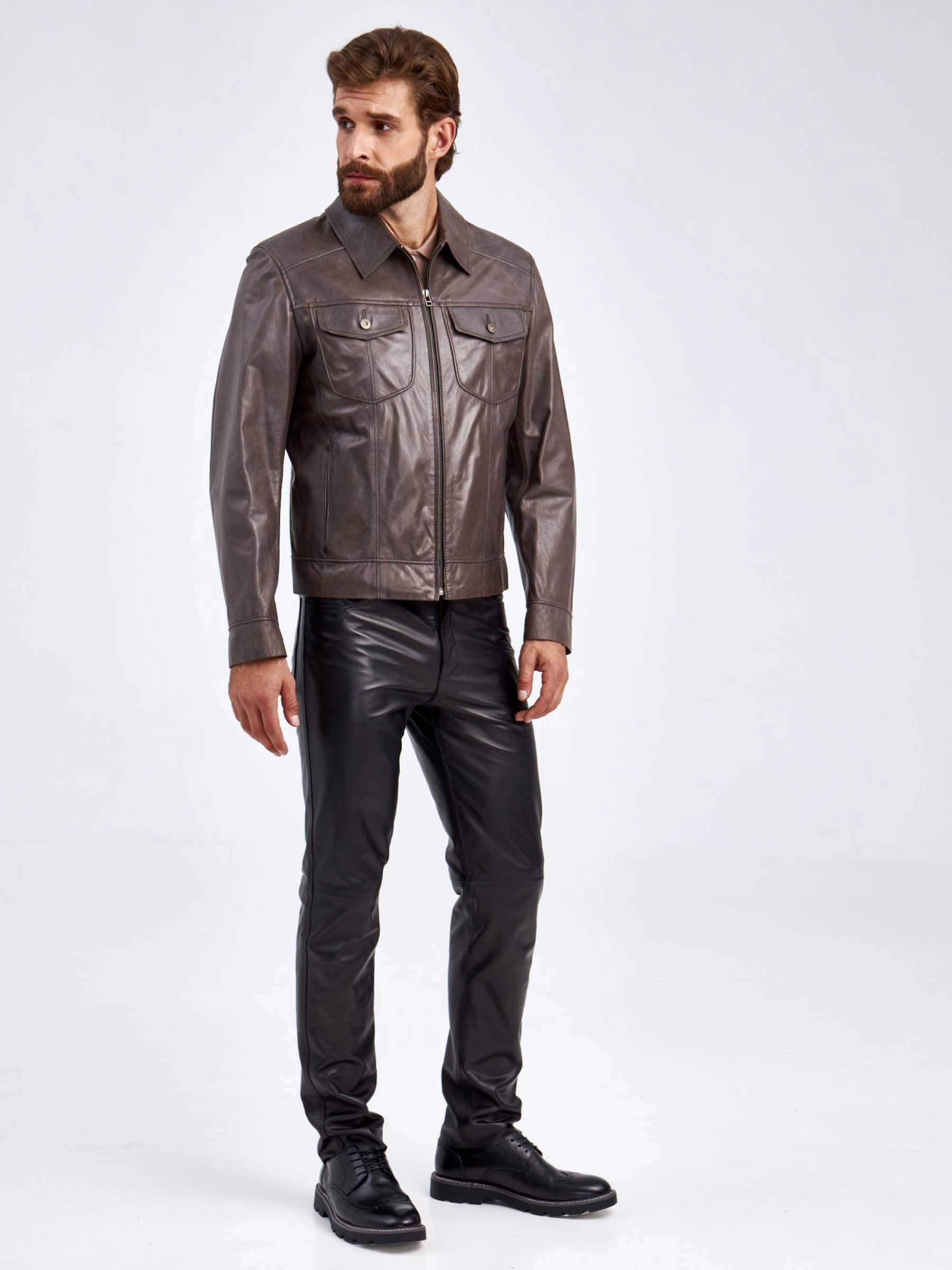 Создавая эту куртку мастера взяли за основу классическую джинсовую модель, но изменили материал. Для ее пошива наши мастера выбрали кожу пуллап. Полуприлегающий силуэт. Воротник- рубашечный. Изделие получилось стильным и комфортным. Идеальная посадка по фигуре.