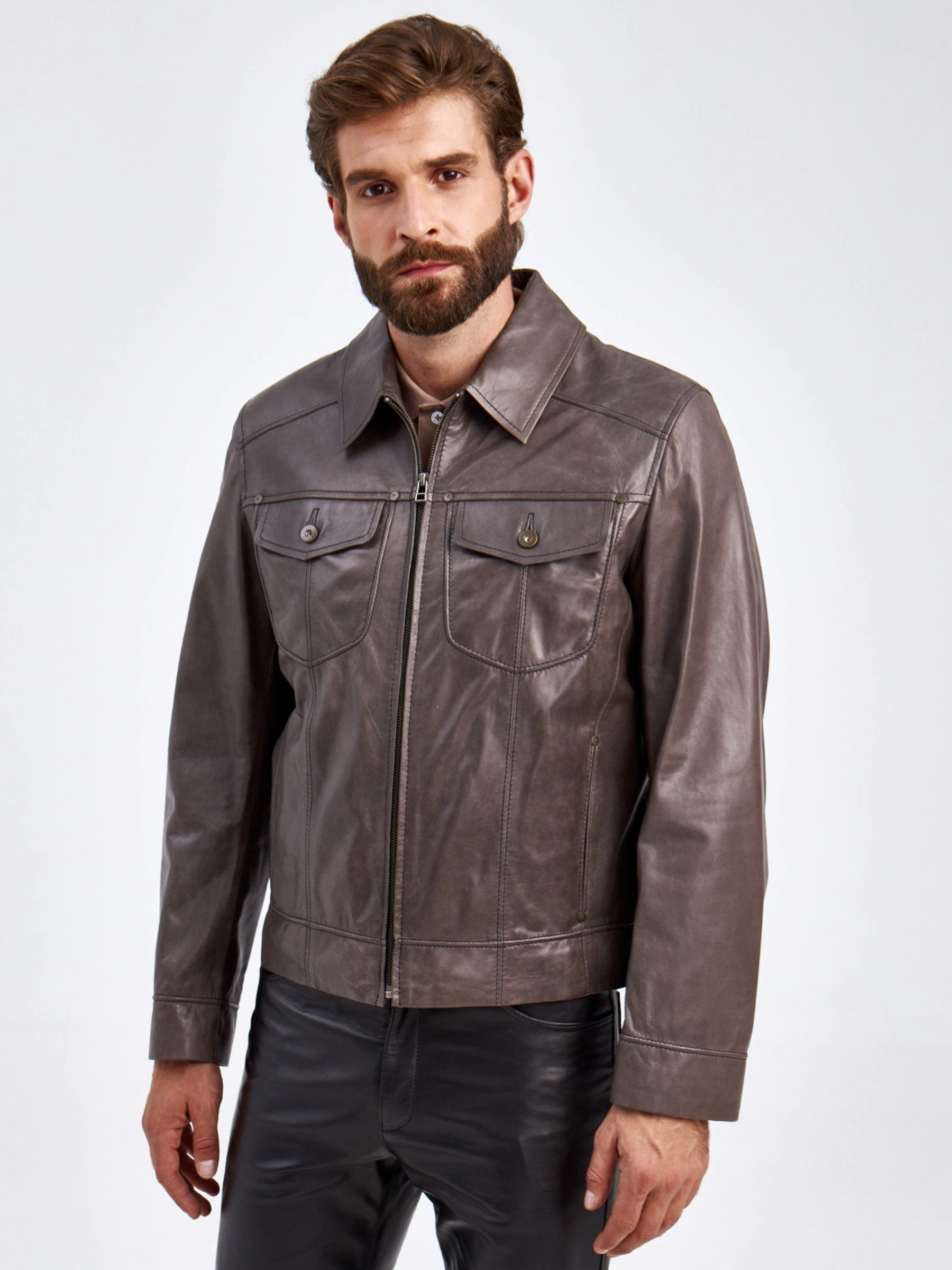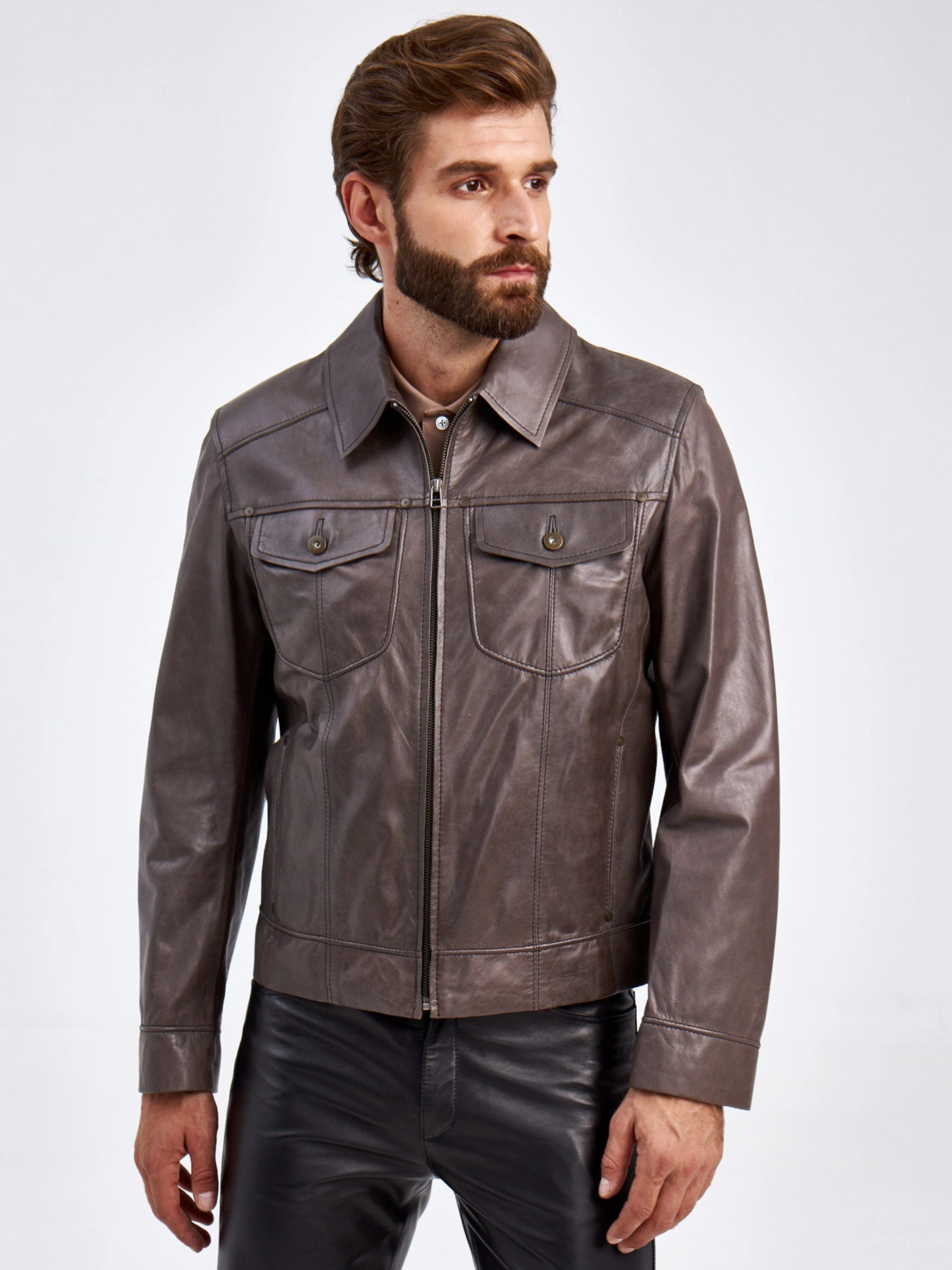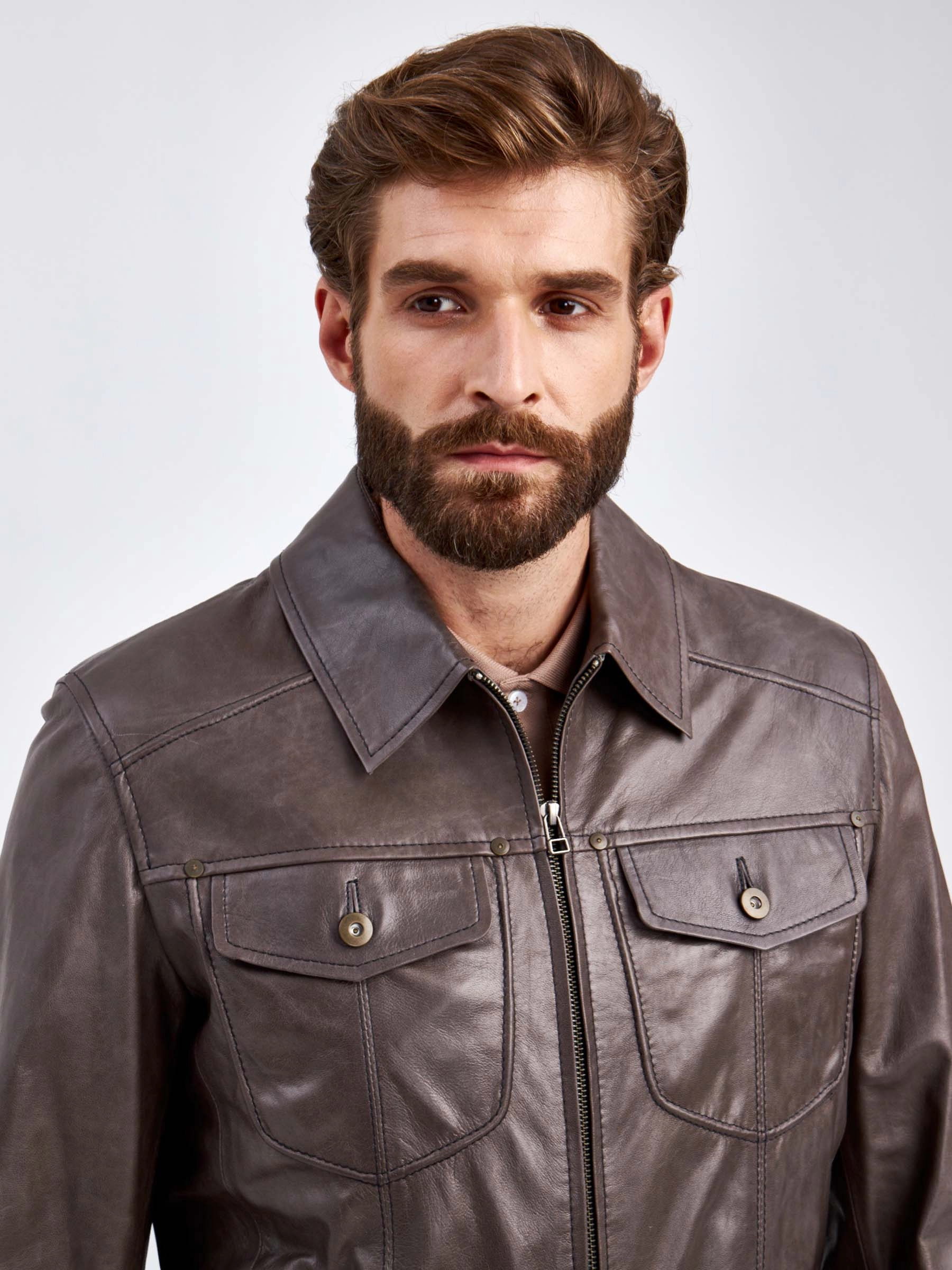 Короткая кожаная мужская куртка Ray, серая, размер 48, артикул 29290