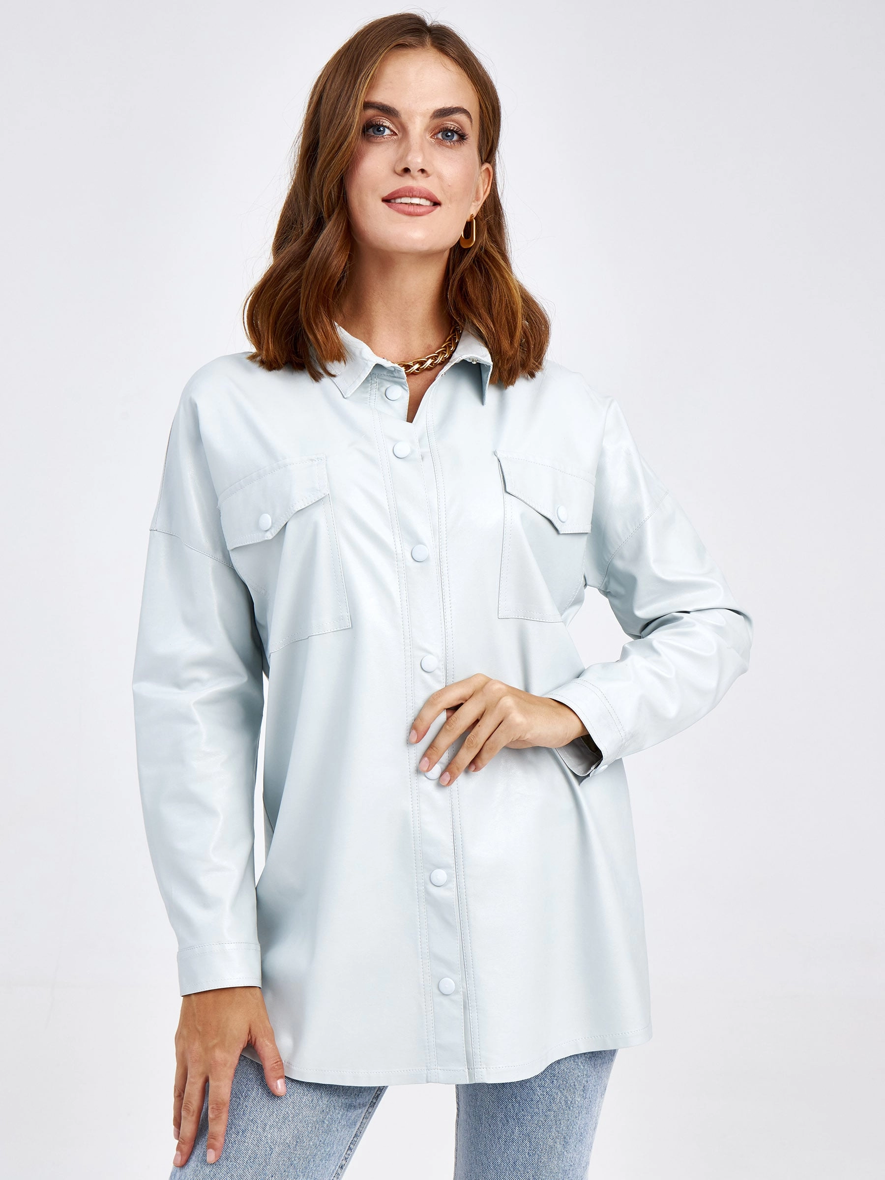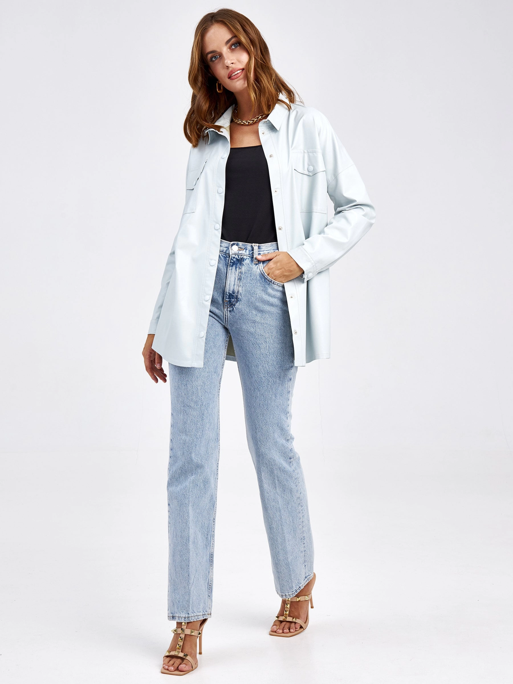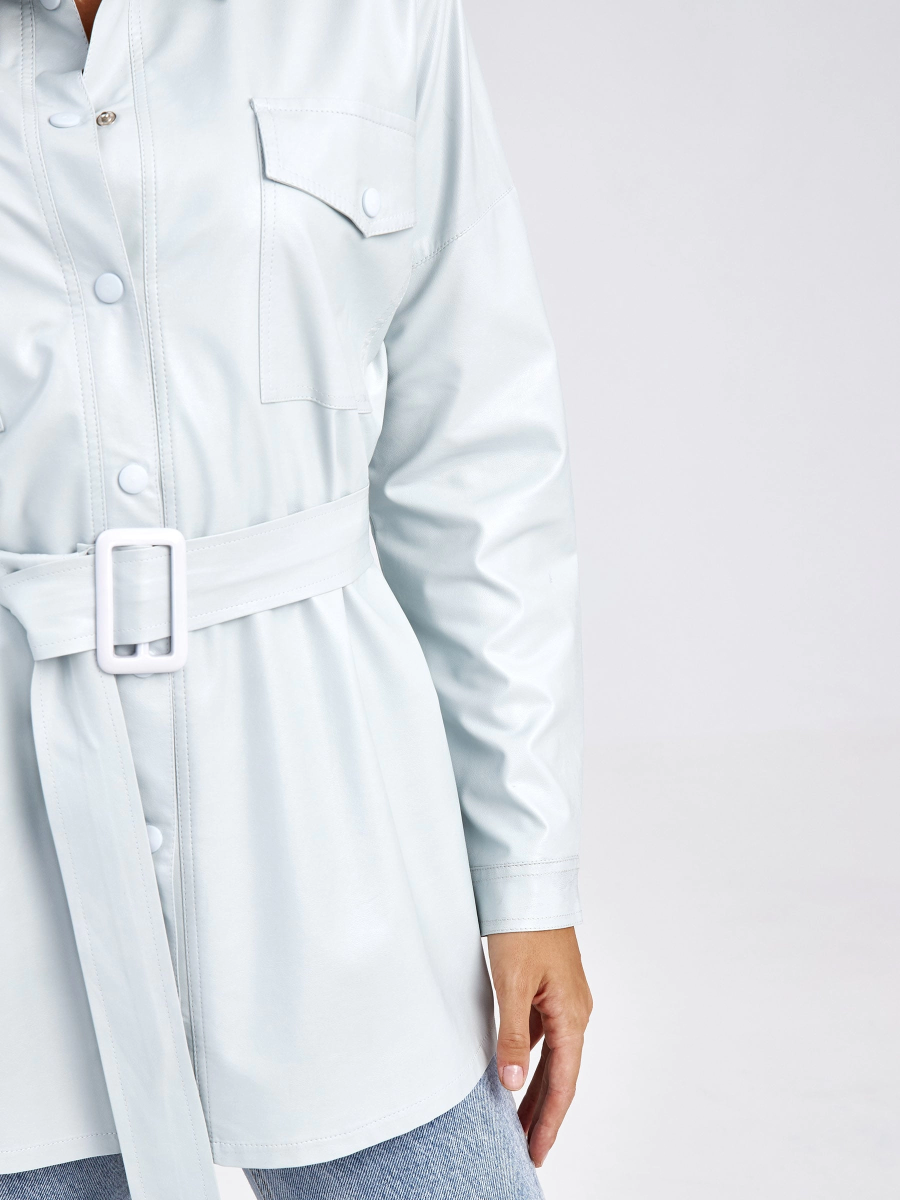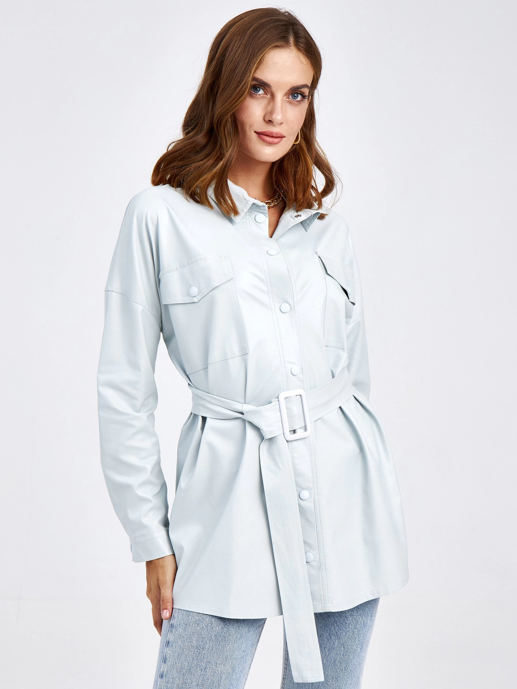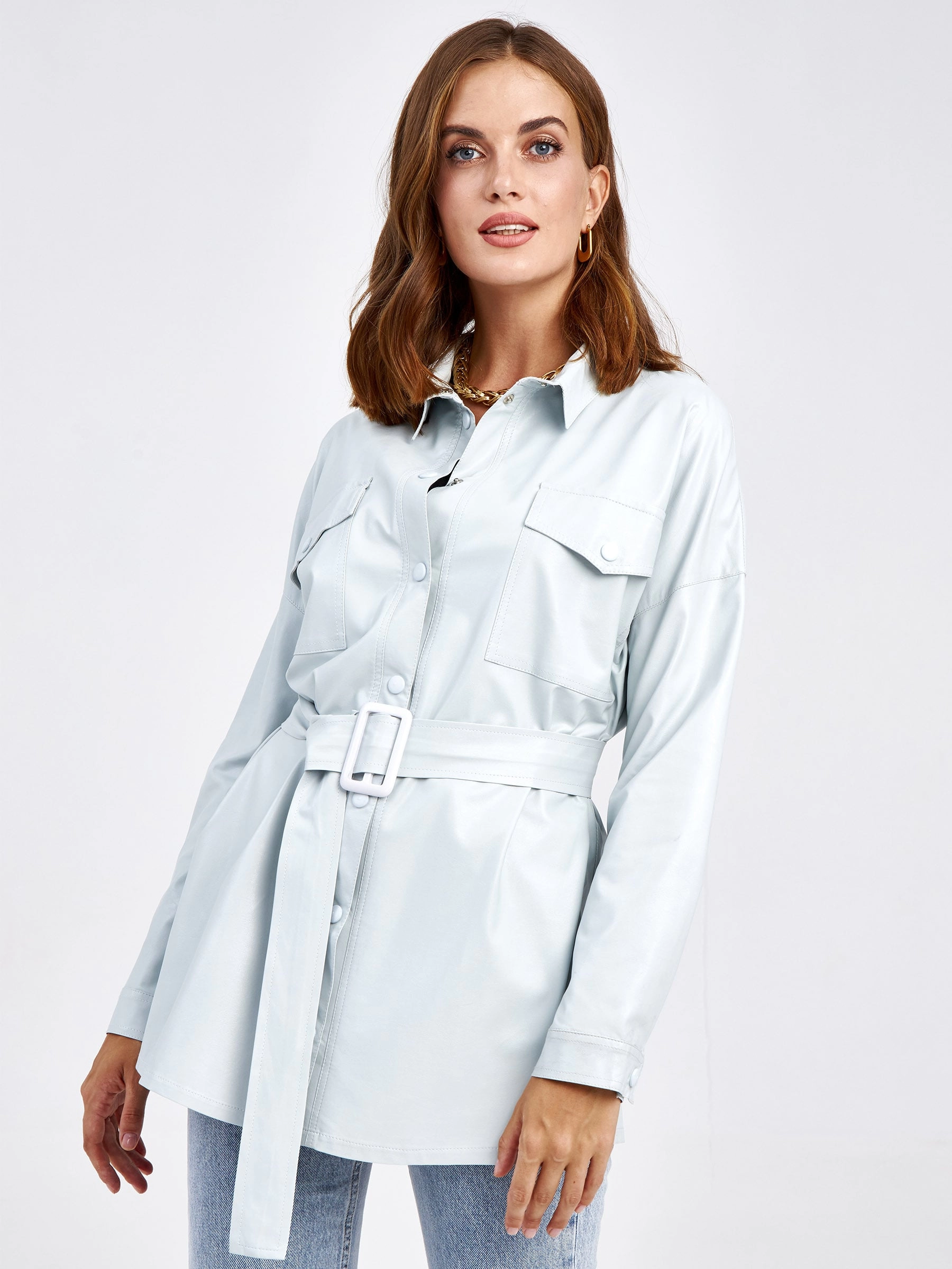 Товар кожаная рубашка женская из экокожи 4878436, мятная, размер 44, артикул 85730 выполнен из экокожи с застежкой кнопки. Рассчитан на сезон: демисезон. Длина изделия 73 см, силуэт прямой.