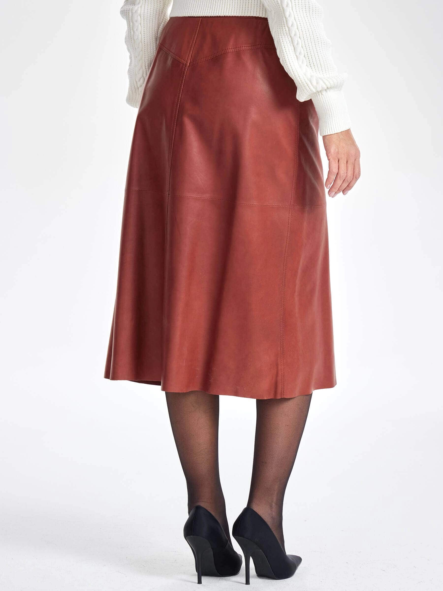 Длинная кожаная юбка 08, коньячная, размер 46, артикул 85350