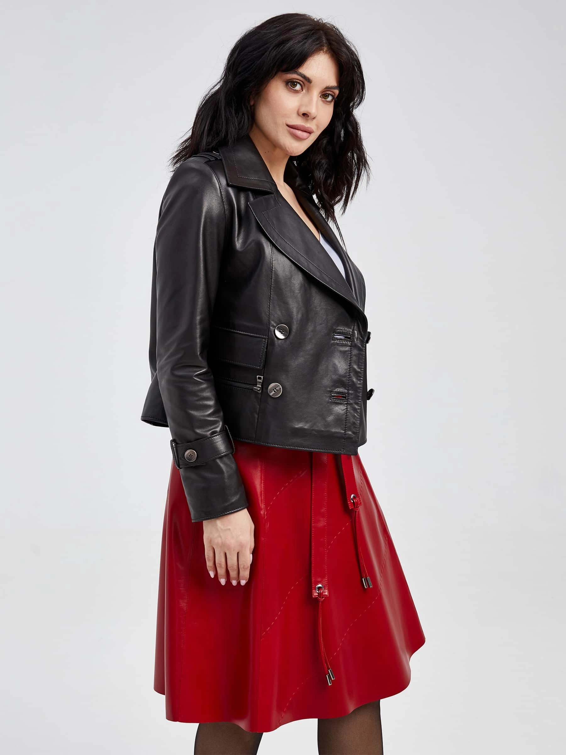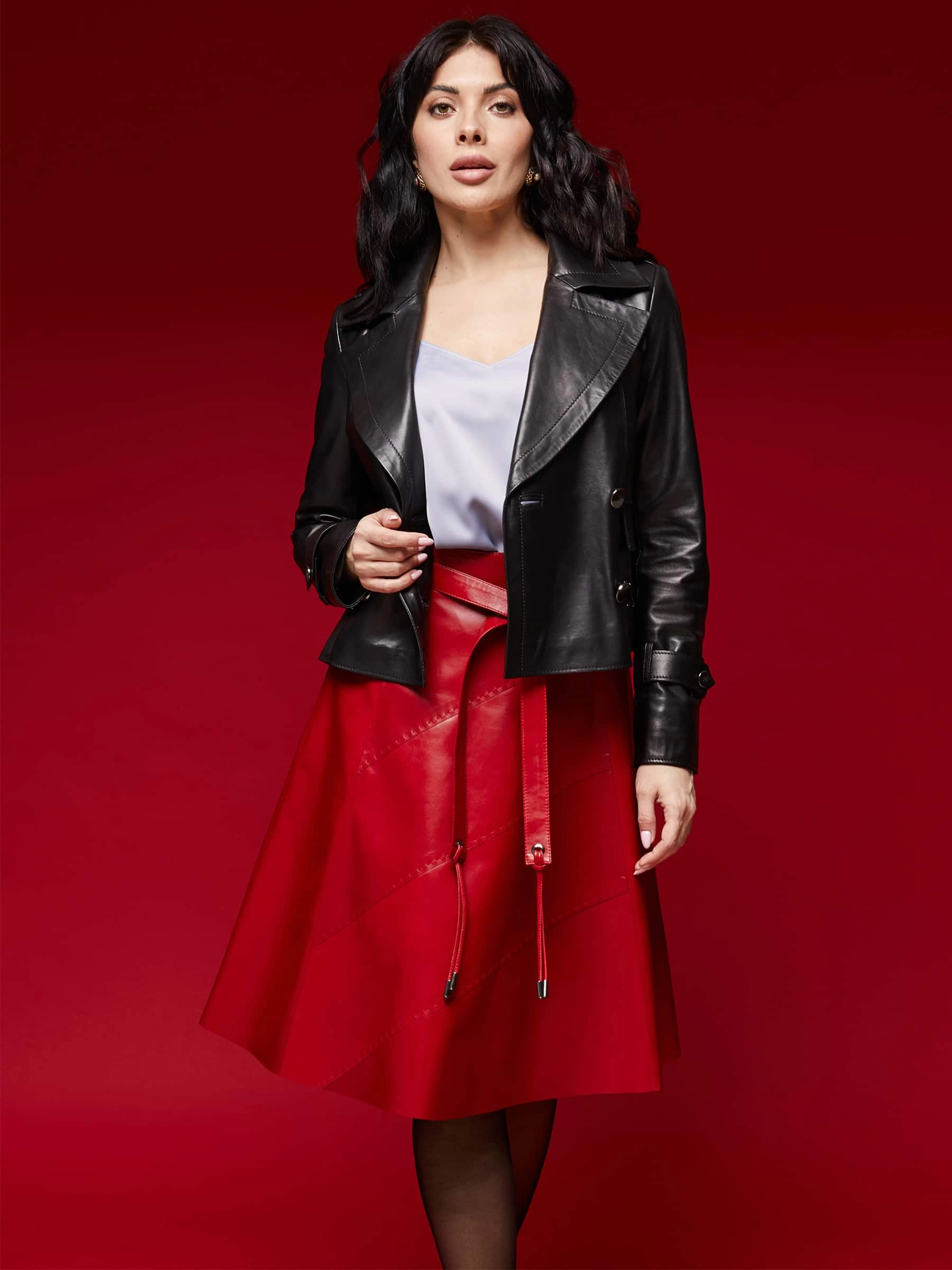 Облегающая расклешённая юбка из натуральной мягкой кожи с благородным блеском сочетает комфорт и долговечность. Летящий крой визуально стройнит фигуру, добавляя образу лёгкость и динамику, а эксклюзивная отделка ручной строчкой подчёркивает премиальное качество. Длинный пояс служит стильным акцентом, а потайная застёжка-молния сзади обеспечивает идеальную посадку и чистоту линий. Универсальная модель легко впишется в любой гардероб - от офиса до вечернего выхода.