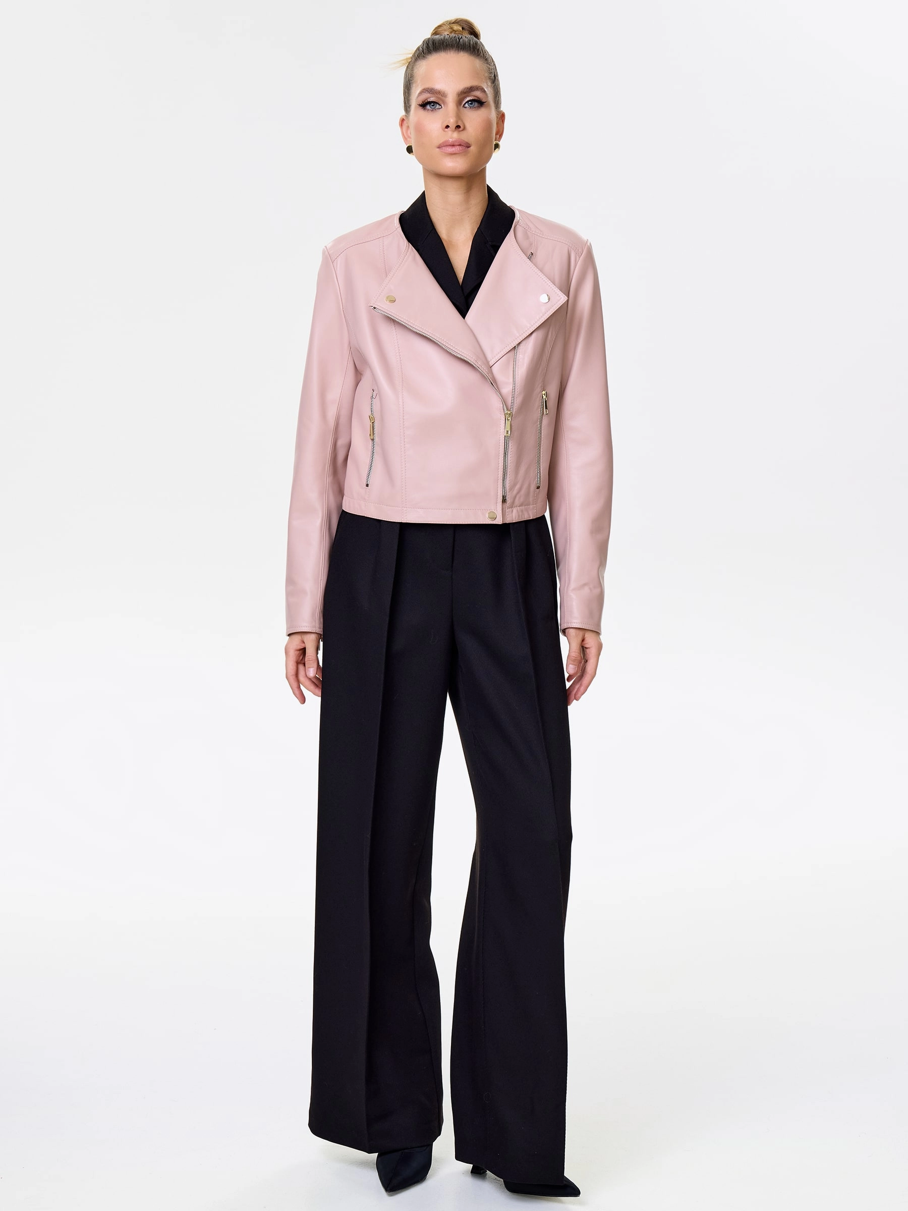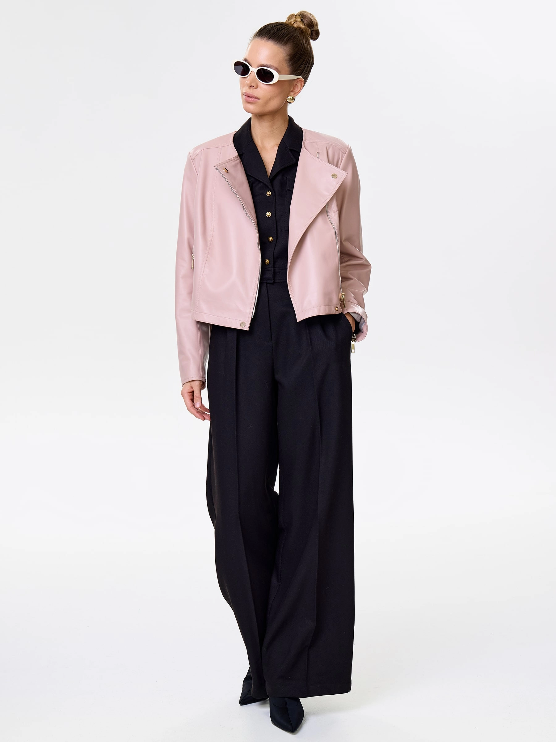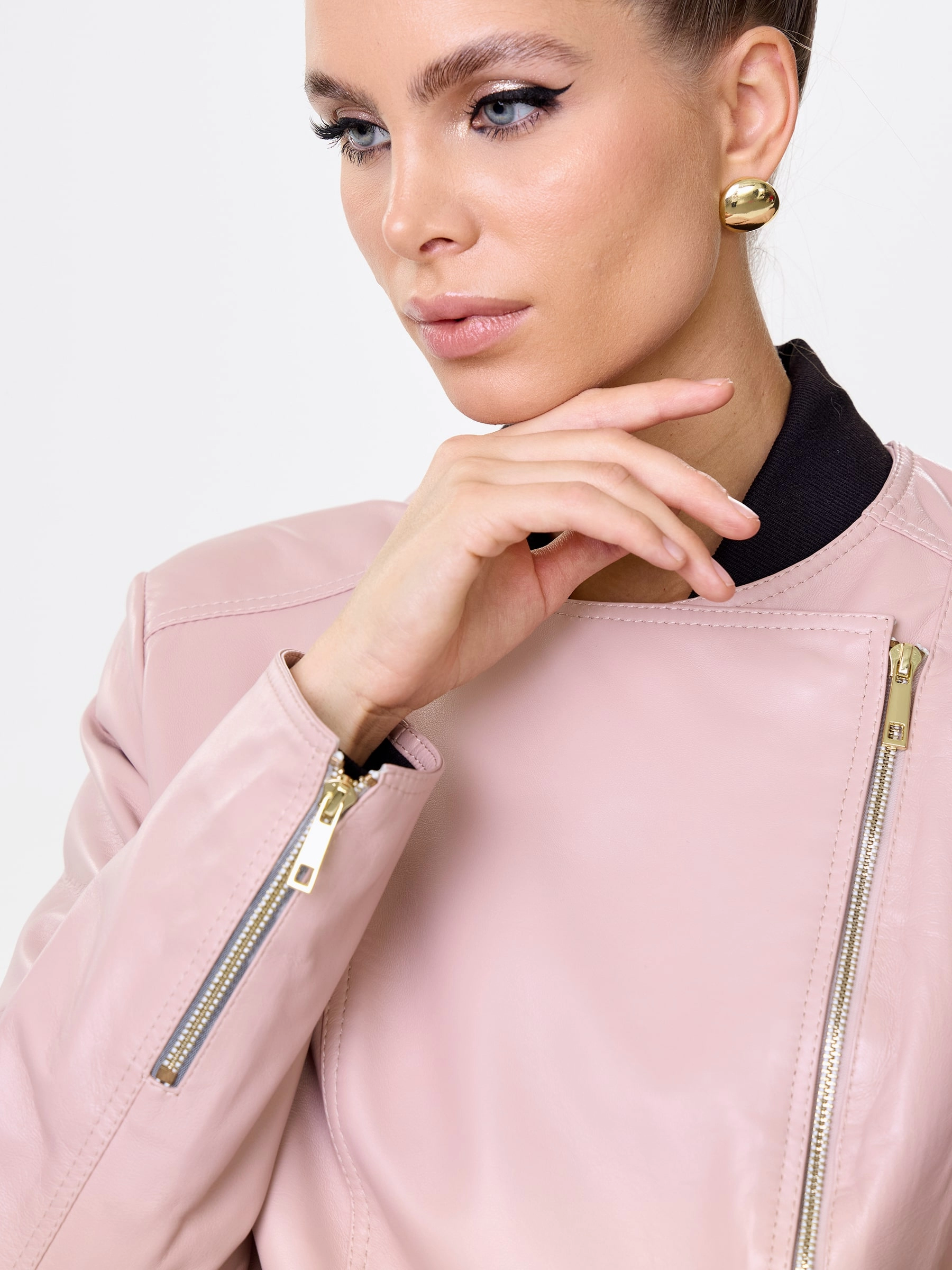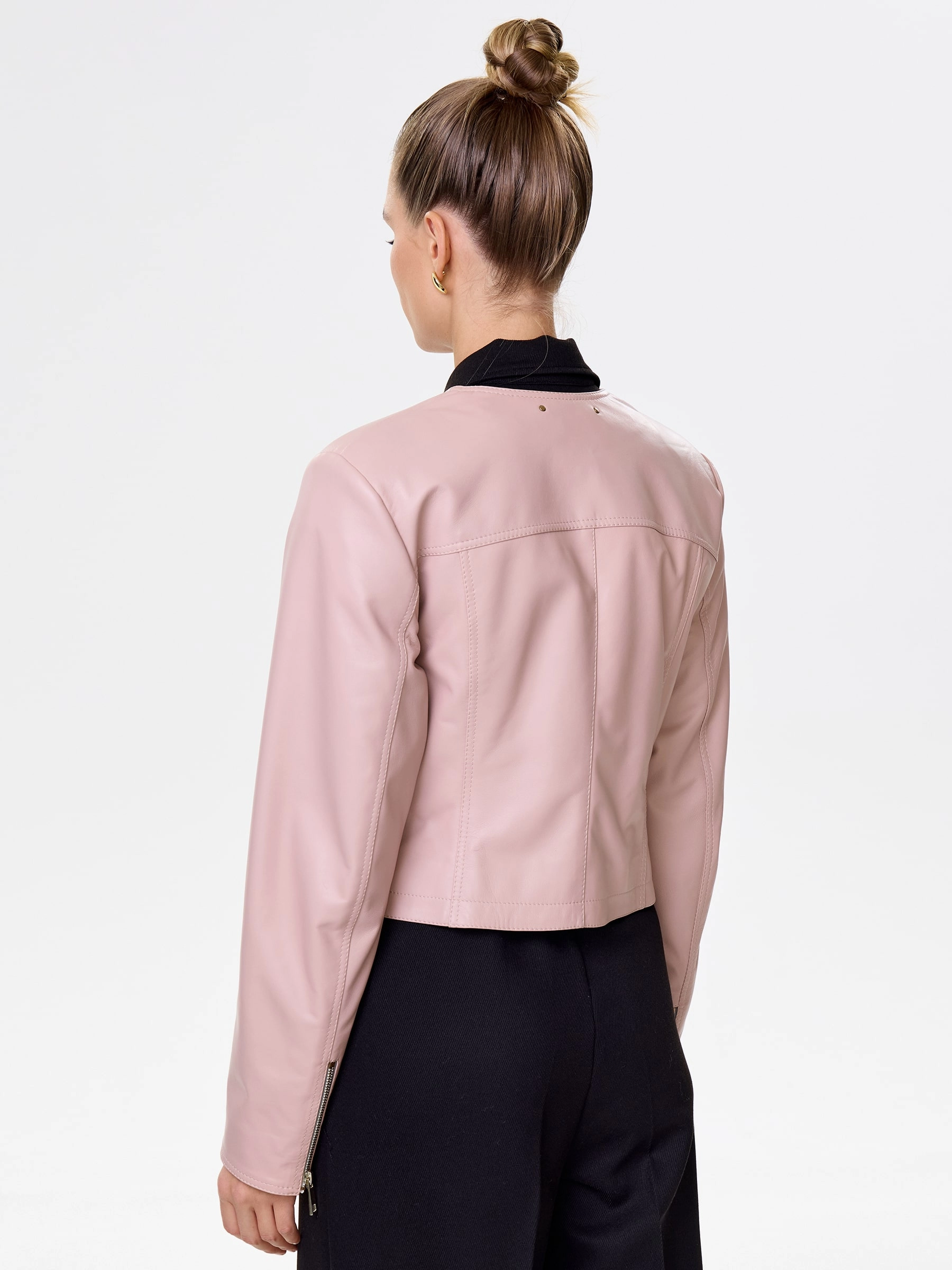 Короткая женская косуха из мягчайшей натуральной кожи нежного пудрового оттенка: полуприлегающий силуэт на молнии без воротника излучает утонченный спортивный шик. Регулируемые боковые паты обеспечивают идеальную посадку, подчеркивая фигуру, а втачные рукава и врезные карманы на молниях гарантируют комфорт и функциональность. Этот нежный must-have легко сочетается с романтичными и бунтарскими образами — наденьте с воздушным платьем-миди из шифона и кедами для нежной дерзости или с черным кружевным топом, кожаными шортами и грубыми ботинками для смелого контраста.