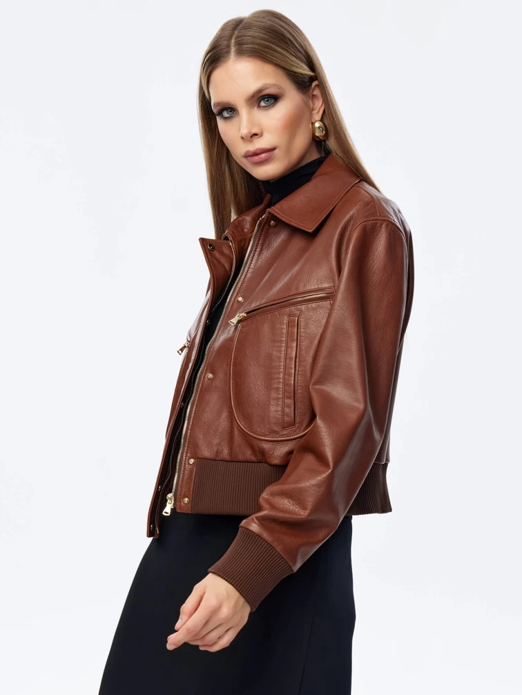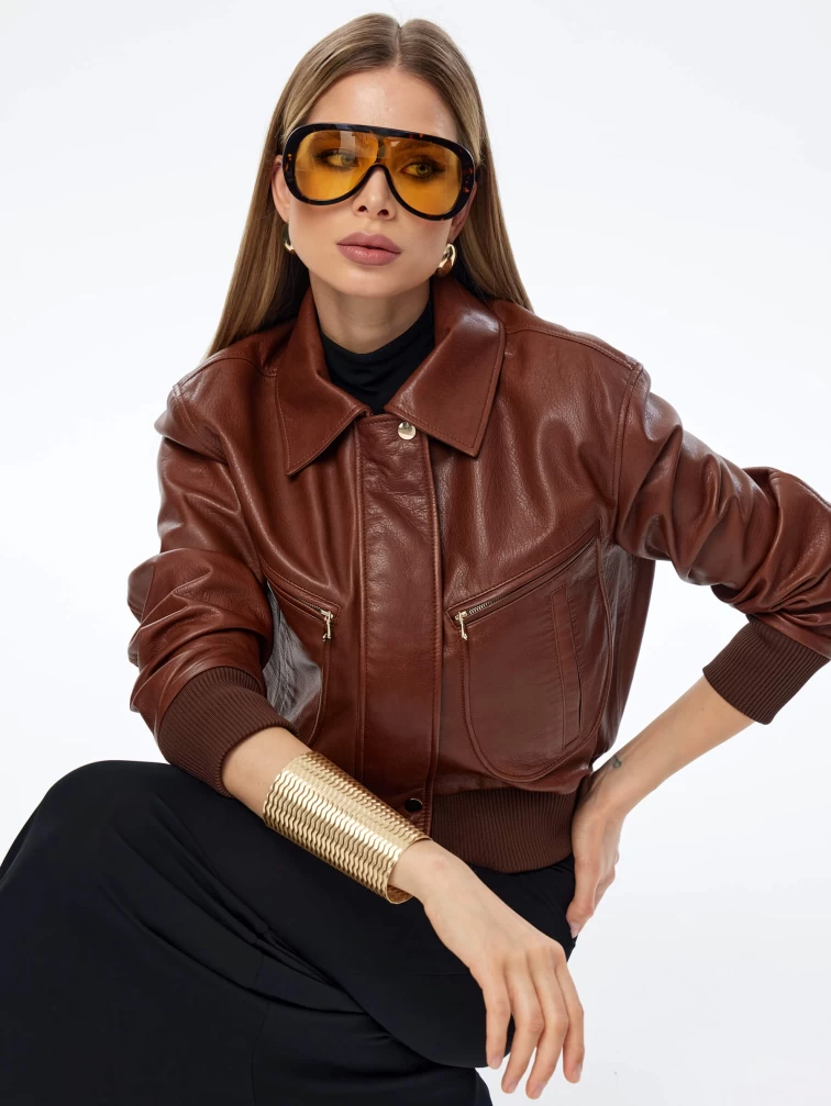 Товар кожаная женская куртка бомбер премиум класса 3066, песочная, размер 44, артикул 24070 выполнен из натуральной кожи с застежкой молния. Рассчитан на сезон: весна-осень. Длина изделия 53 см, силуэт свободный.