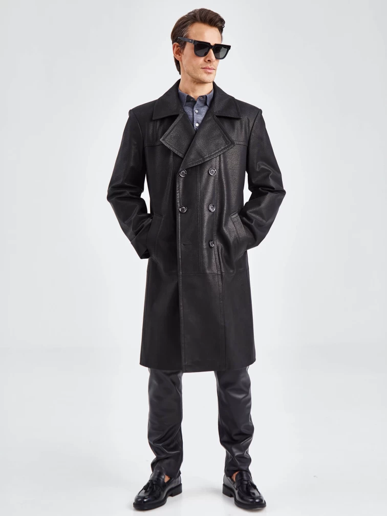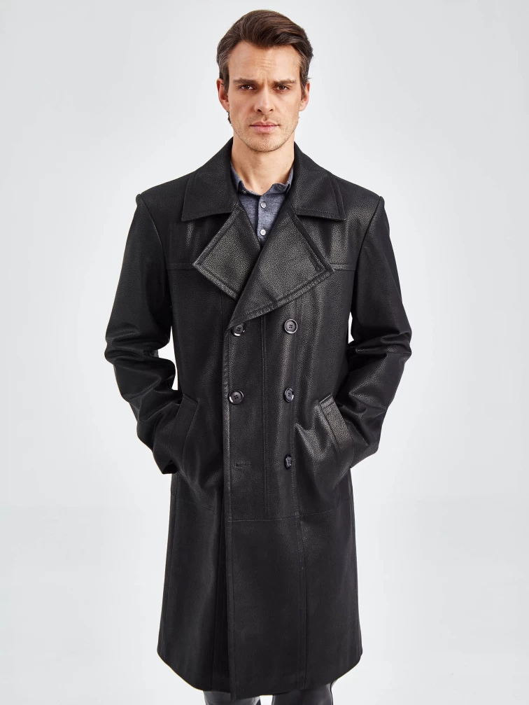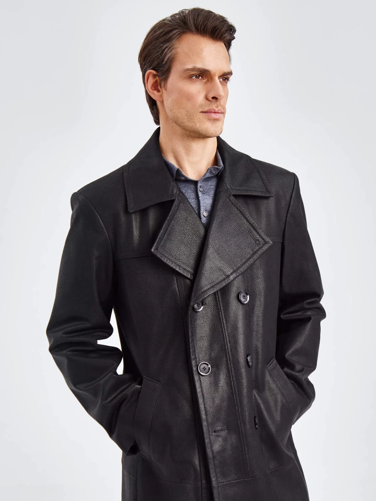 Товар двубортное мужское кожаное пальто премиум класса чикаго, черное, размер 48, артикул 71330 выполнен из натуральной кожи с застежкой пуговицы. Рассчитан на сезон: демисезон. Длина изделия 110 см, силуэт полуприлегающий.
