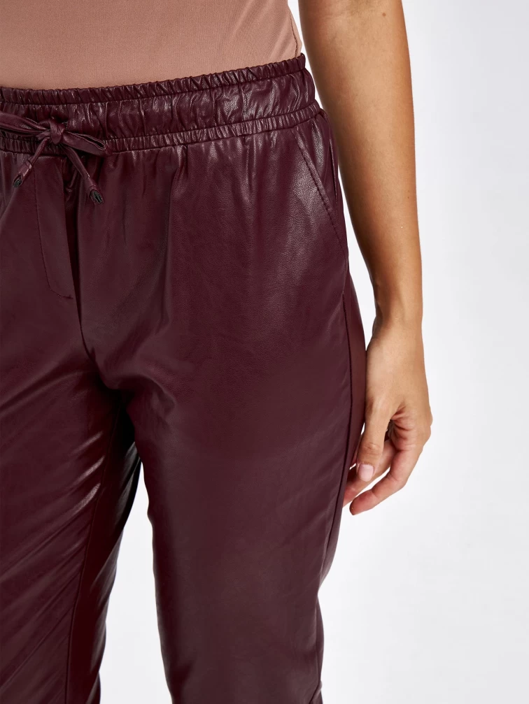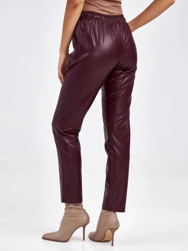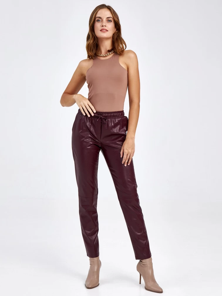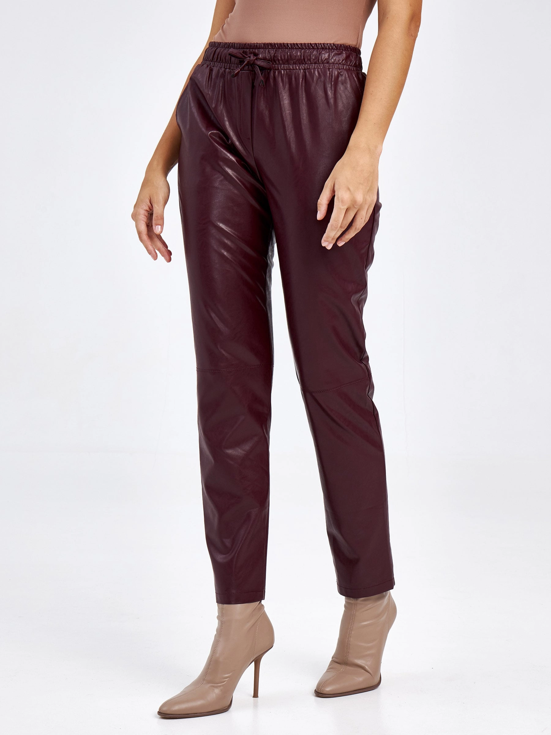Товар женские кожаные брюки из экокожи 4616629, бордовые, размер 44, артикул 85630 выполнен из экокожи с застежкой резинка. Рассчитан на сезон: демисезон. Длина изделия свыше 90 см, силуэт свободный.