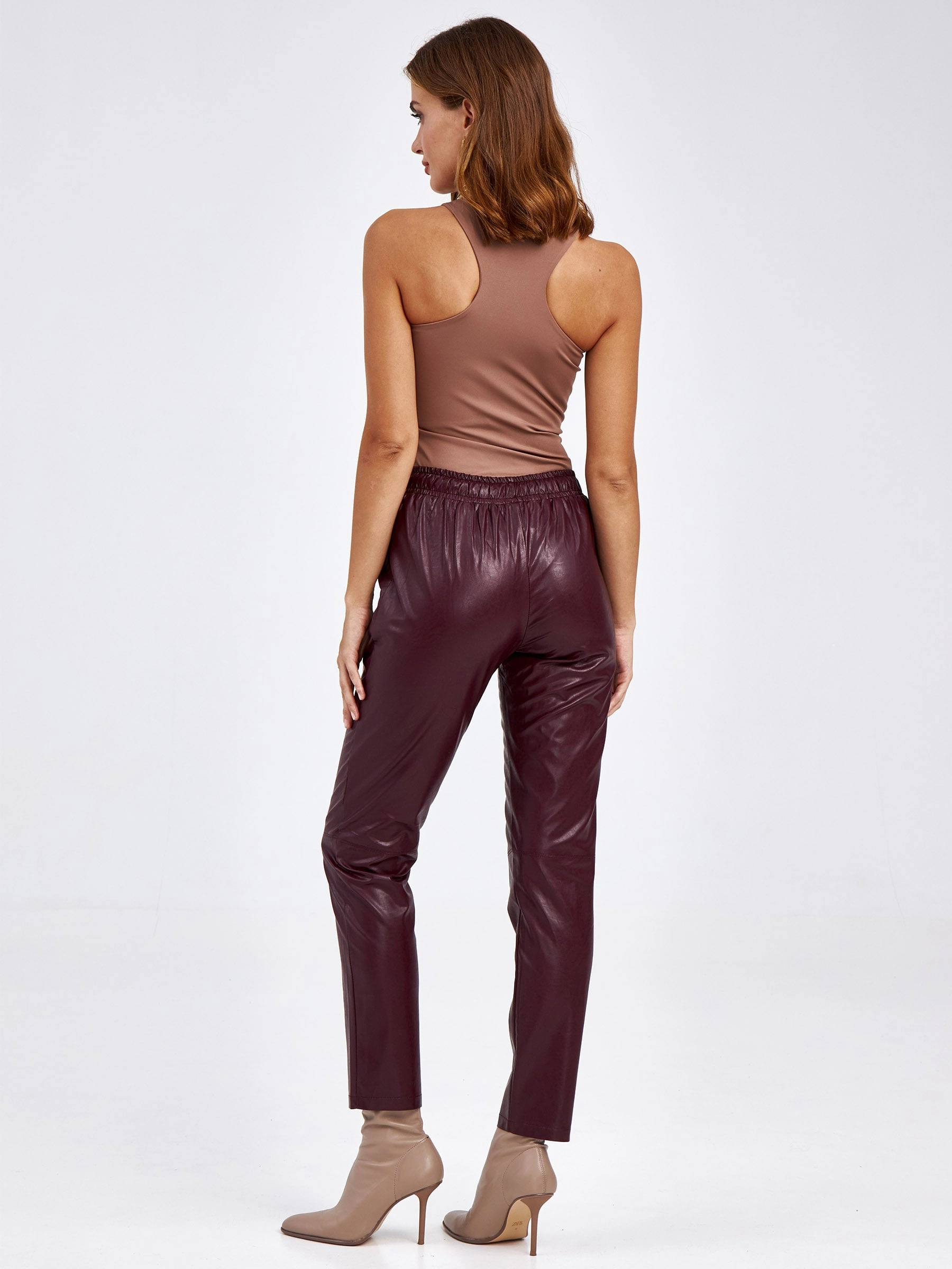 Женские кожаные брюки из экокожи 4616629, бордовые, размер 44, артикул 85630