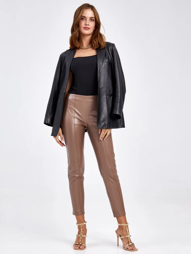 Товар кожаные брюки из экокожи для женщин 4820740, бежевые, размер 44, артикул 85660 выполнен из экокожи с застежкой молния. Рассчитан на сезон: демисезон. Длина изделия свыше 90 см, силуэт облегающий.