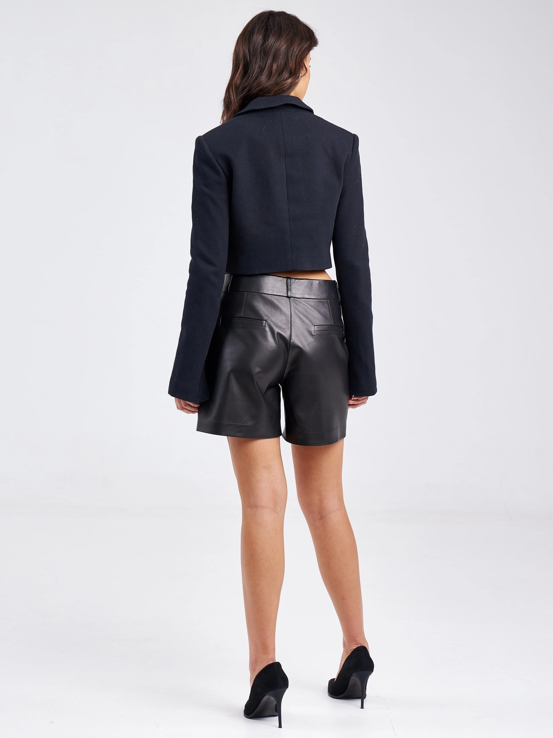 Короткие женские кожаные шорты 03, черные, размер 44, артикул 85900