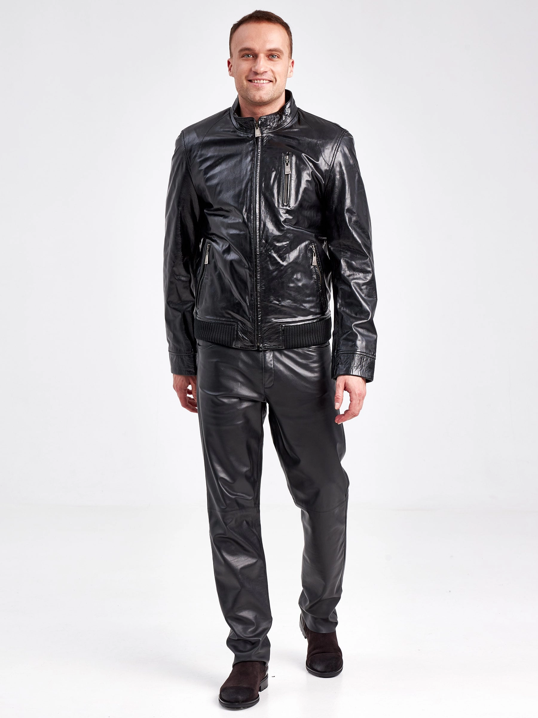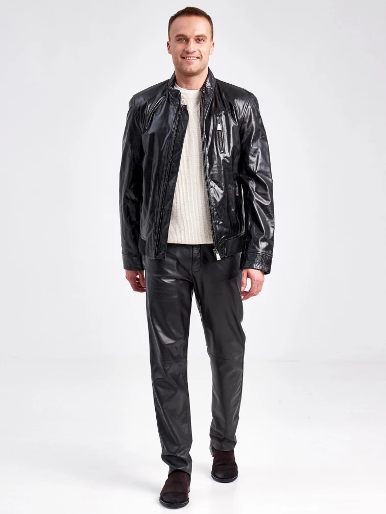 Кожаный бомбер мужской 4395, черный, размер 46, артикул 23090