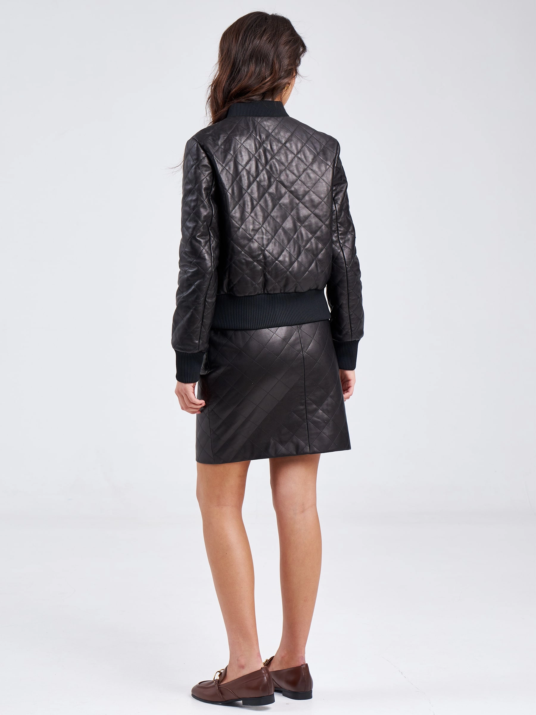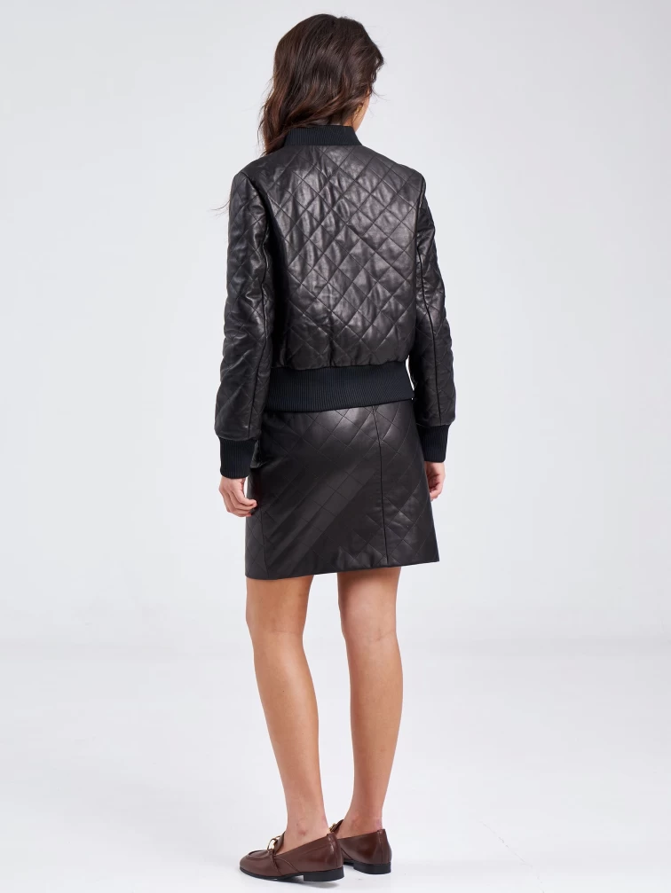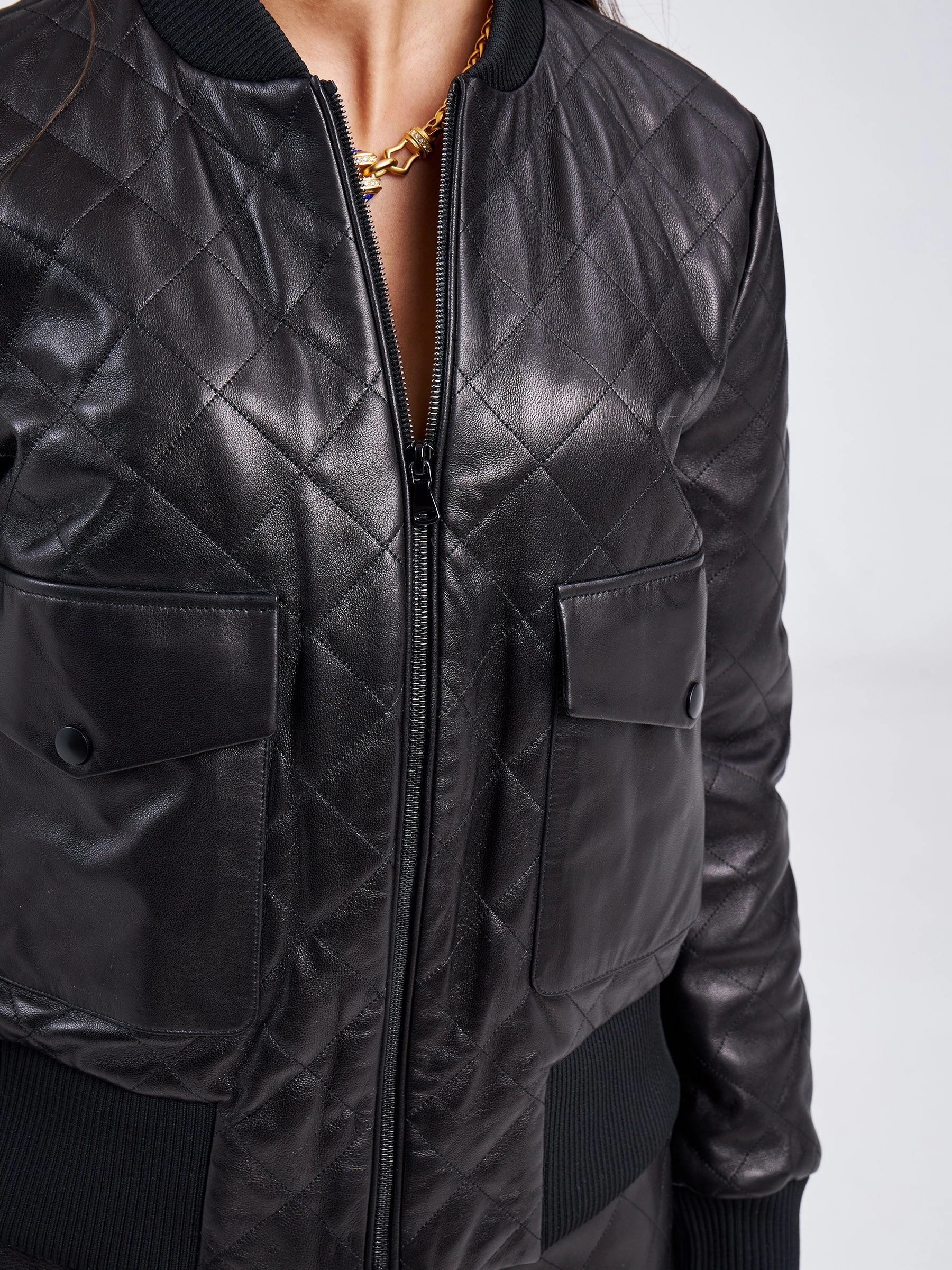 Кожаный стеганый женский бомбер премиум класса 3042, черный, размер 50, артикул 23250