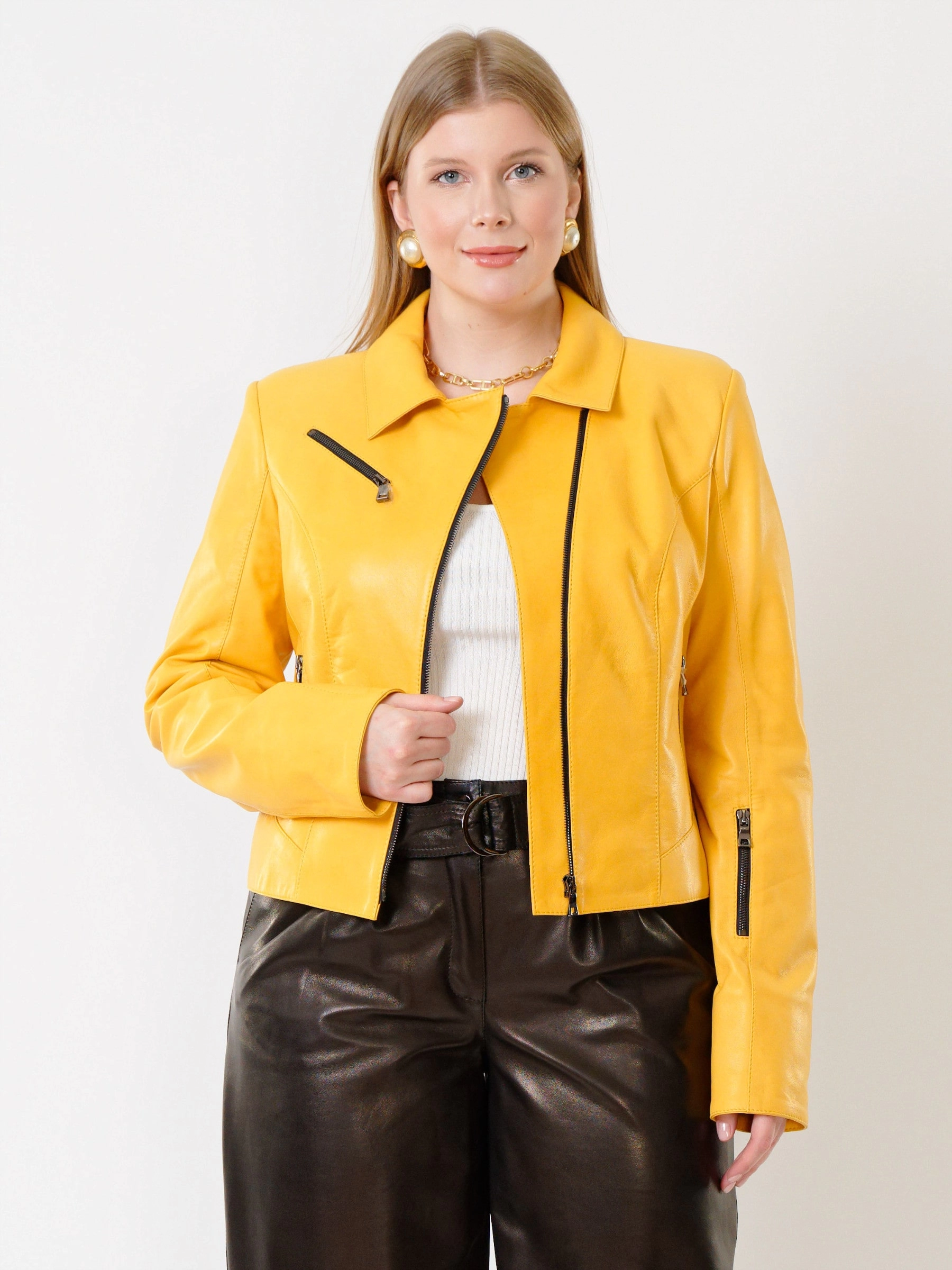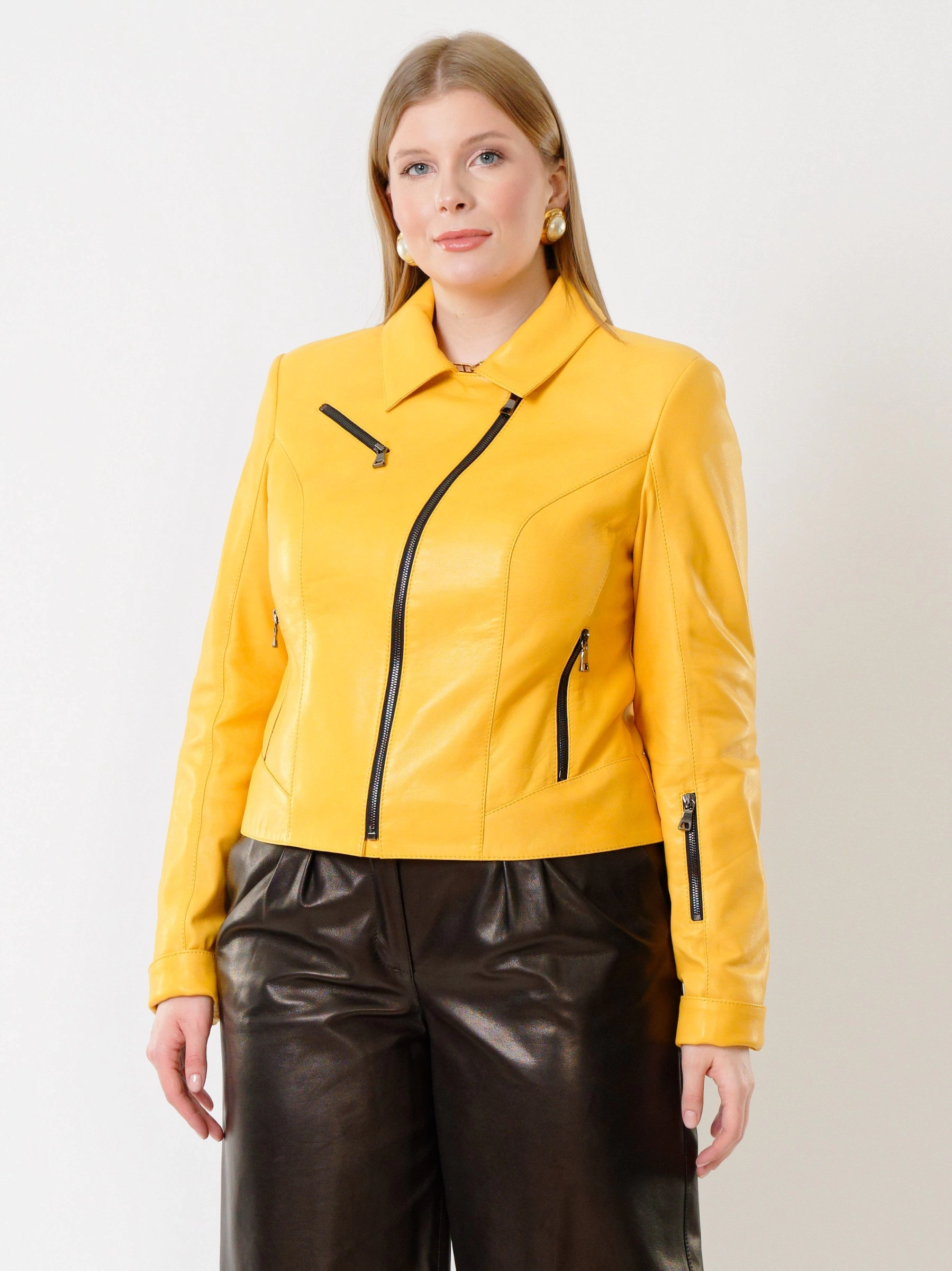 Кожаный комплект женский: Куртка 3005 + Брюки 05, желтый/черный, р. 44, арт. 111119