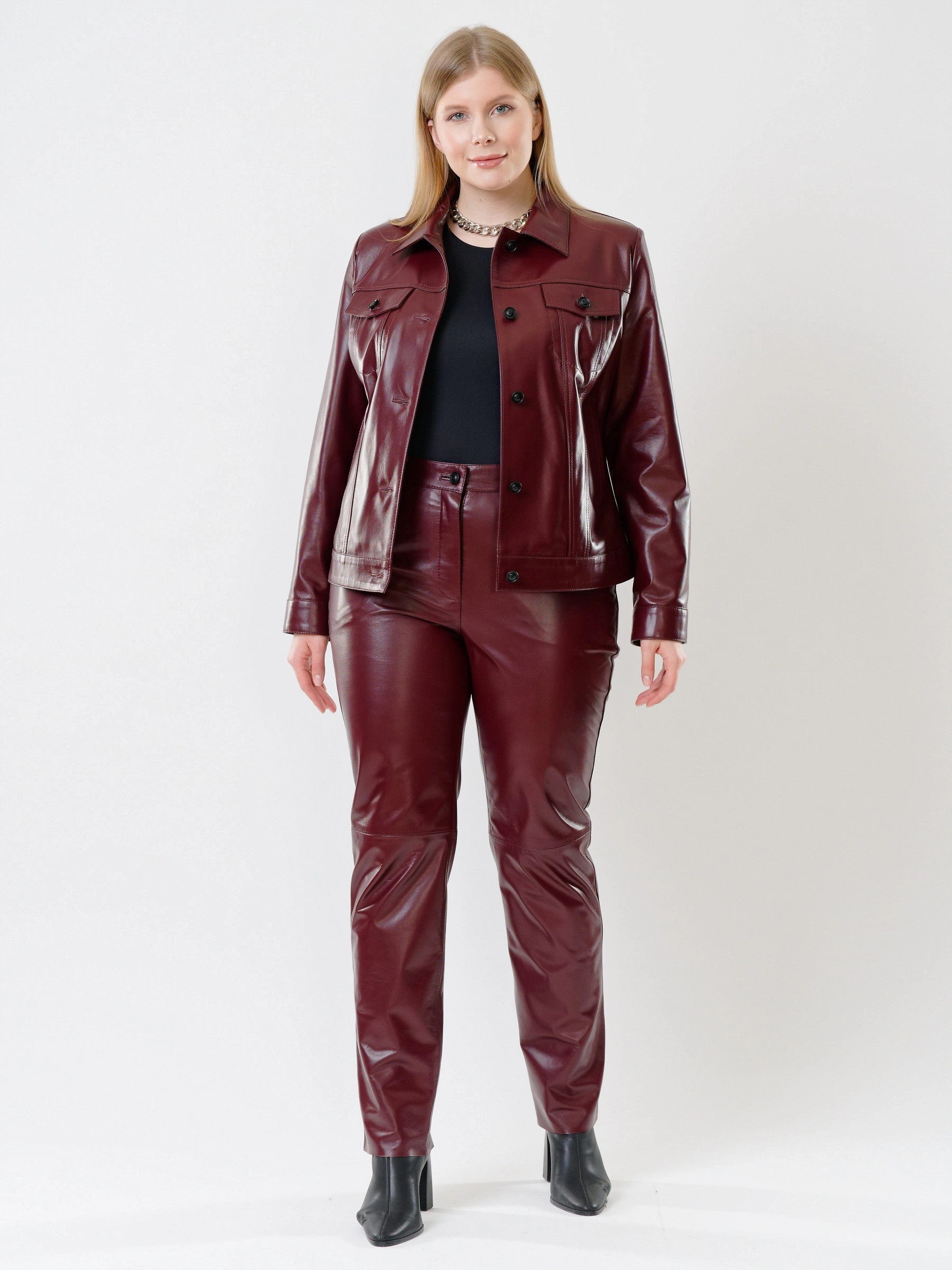 Товар кожаный комплект женский: куртка 3008 + брюки 02, бордовый, р. 48, арт. 111223.