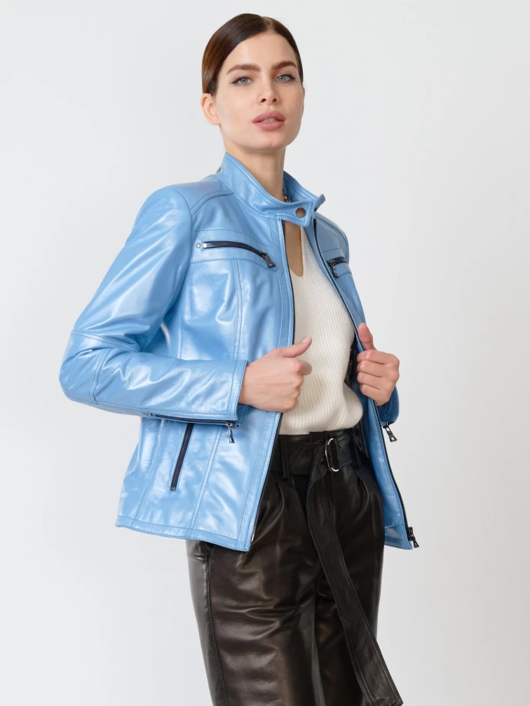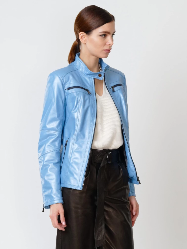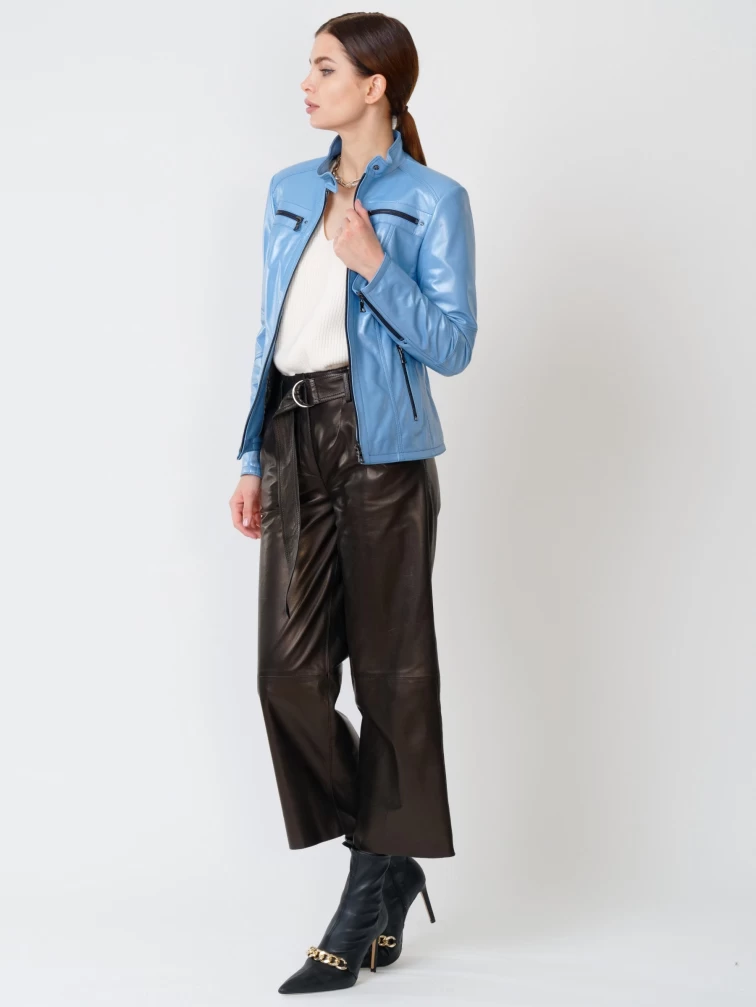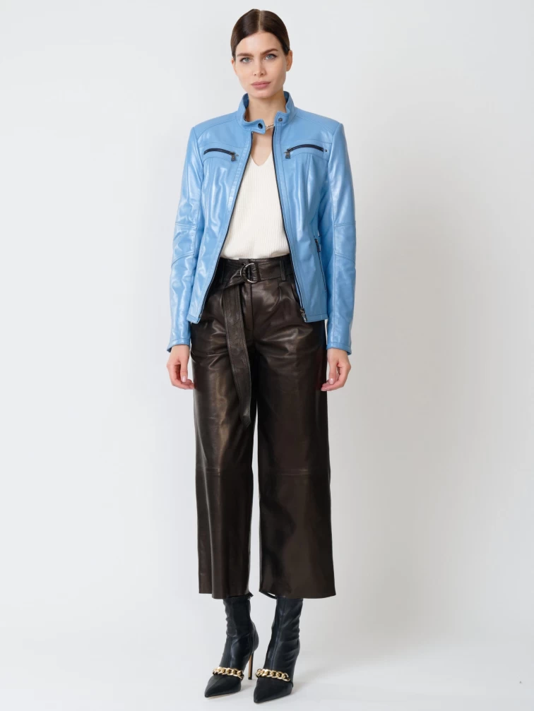 Товар кожаный комплект женский: куртка 301 + брюки 05, голубой перламутр/черный, р. 44, арт. 111167. Рассчитан на сезон: весна-лето.