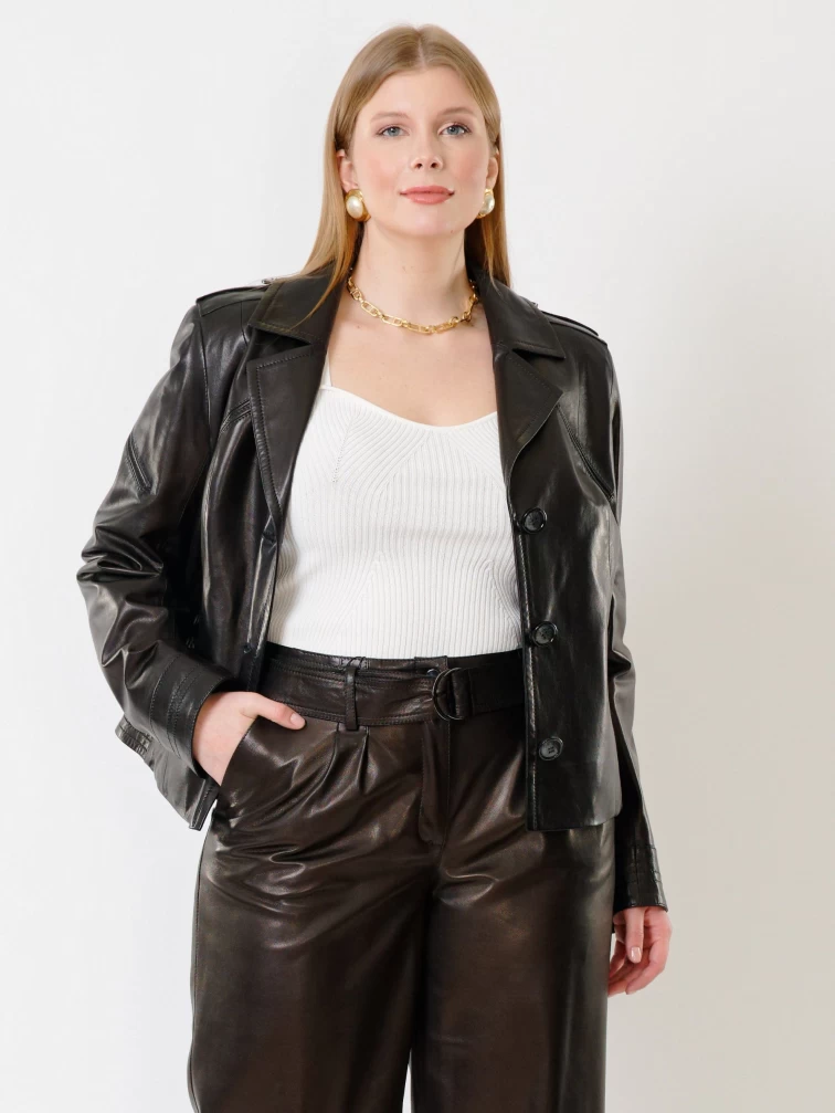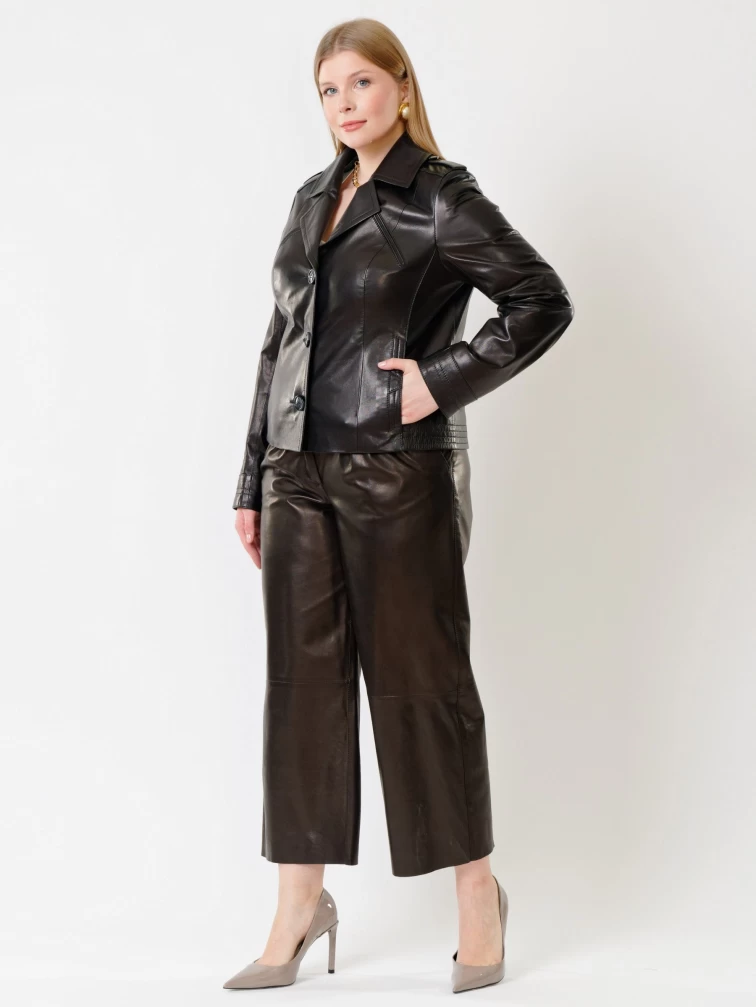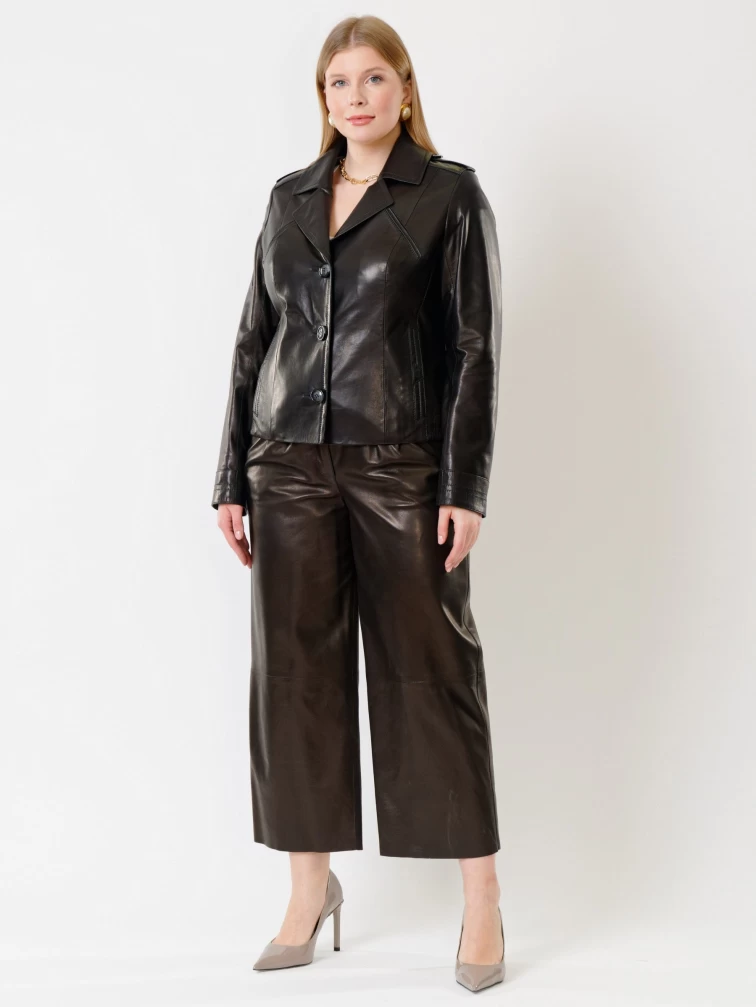 Стильная куртка-пиджак в тандеме с широкими брюками из натуральной кожи премиального качества. Основная черта данного комплекта: универсальность и комфорт. Великолепная работа наших портных. Безупречная посадка по фигуре. Возможно индивидуальное исполнение в любых базовых размерах, в любом цвете кожи, имеющемся в наличии