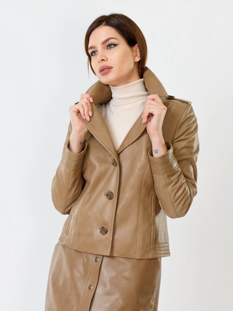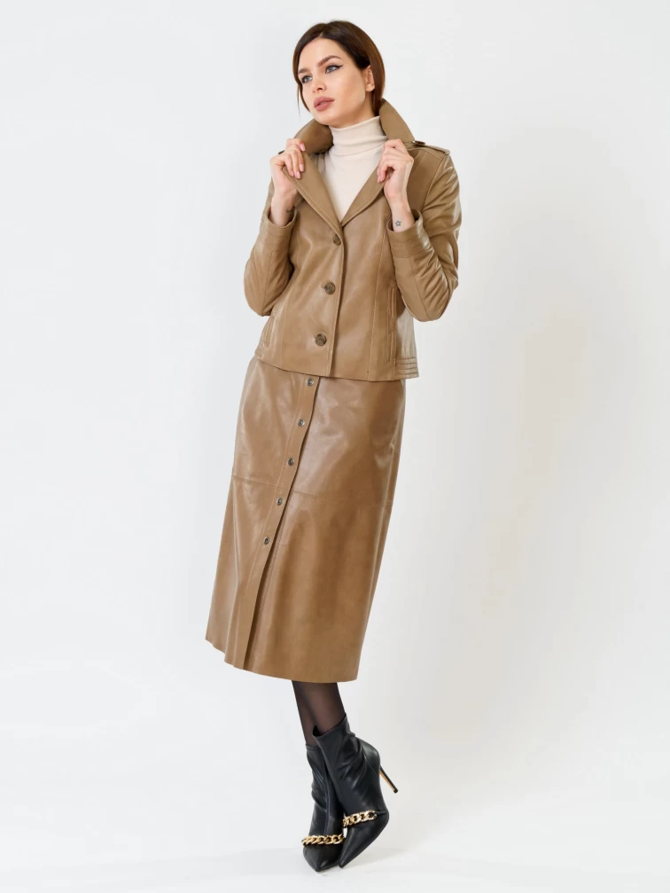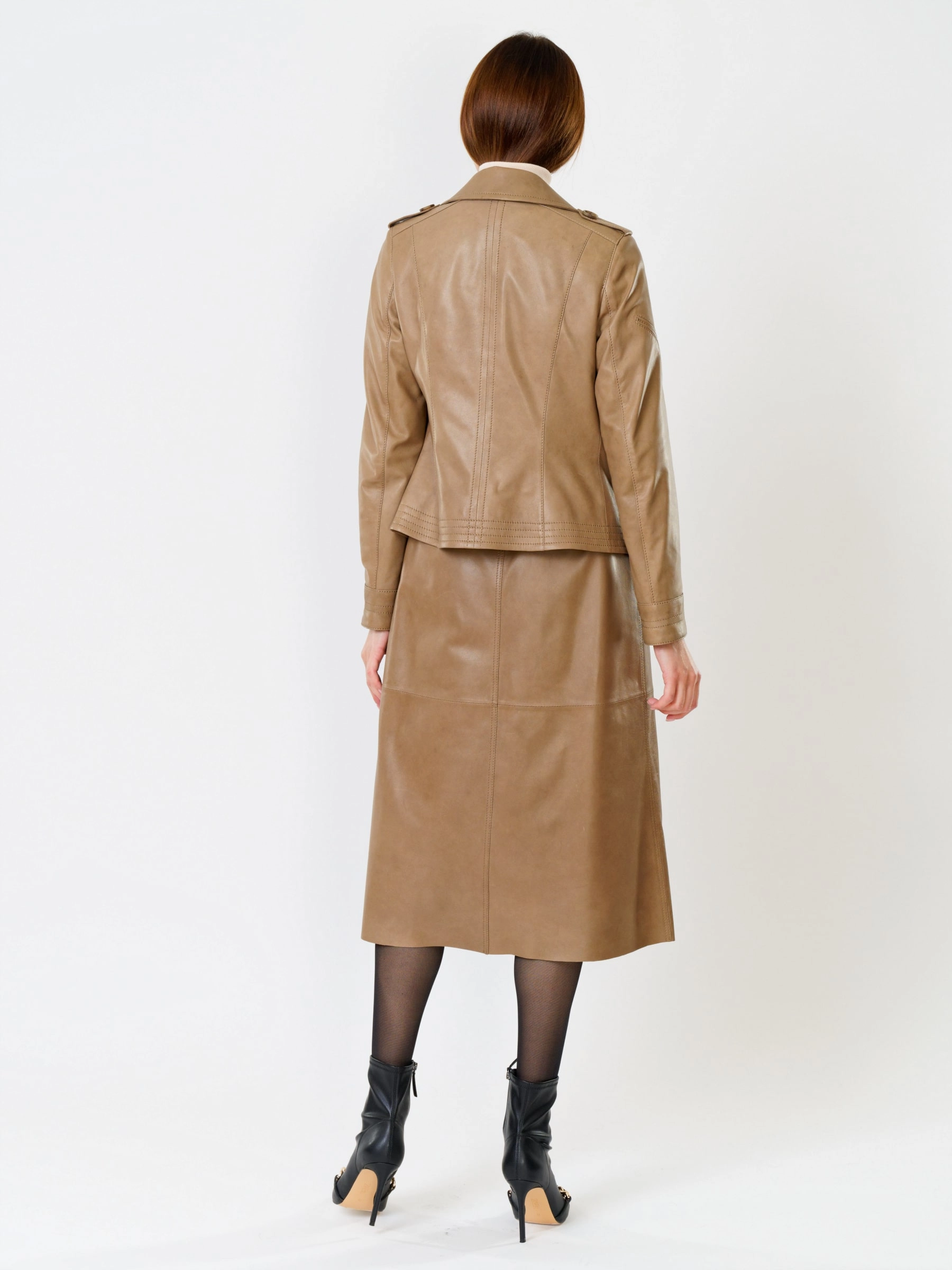 Товар кожаный комплект женский: куртка 304 + юбка-миди 08, коричневый, р. 44, арт. 111141. Рассчитан на сезон: весна-лето.