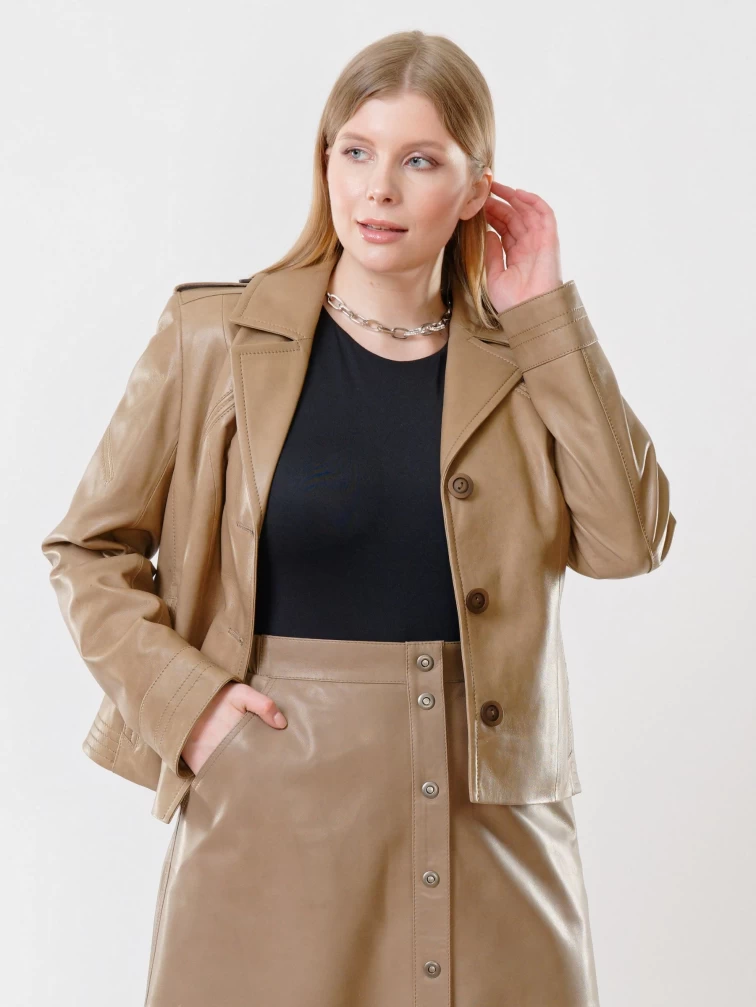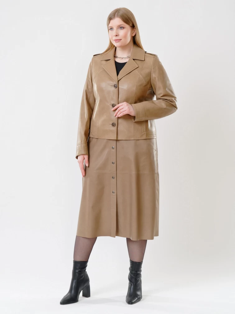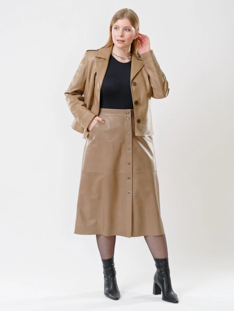 Товар кожаный комплект женский: куртка 304 + юбка-миди 08, коричневый, р. 44, арт. 111142. Рассчитан на сезон: весна-лето.