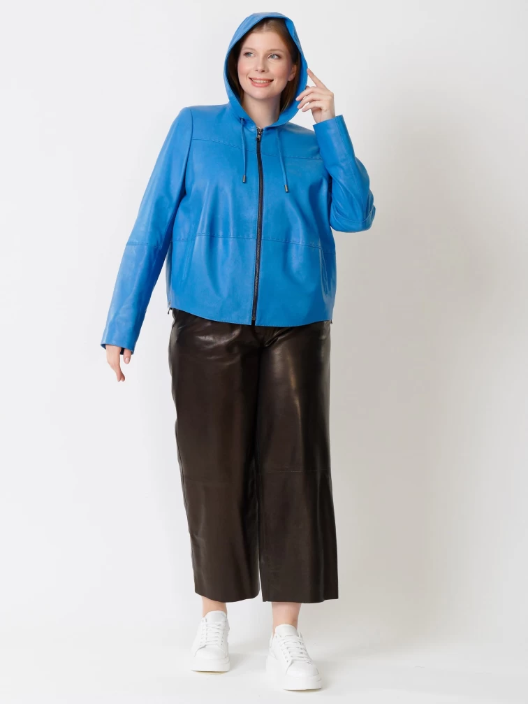 Кожаный комплект женский: Куртка 308рс + Брюки 05, голубой/черный, р. 46, арт. 111156