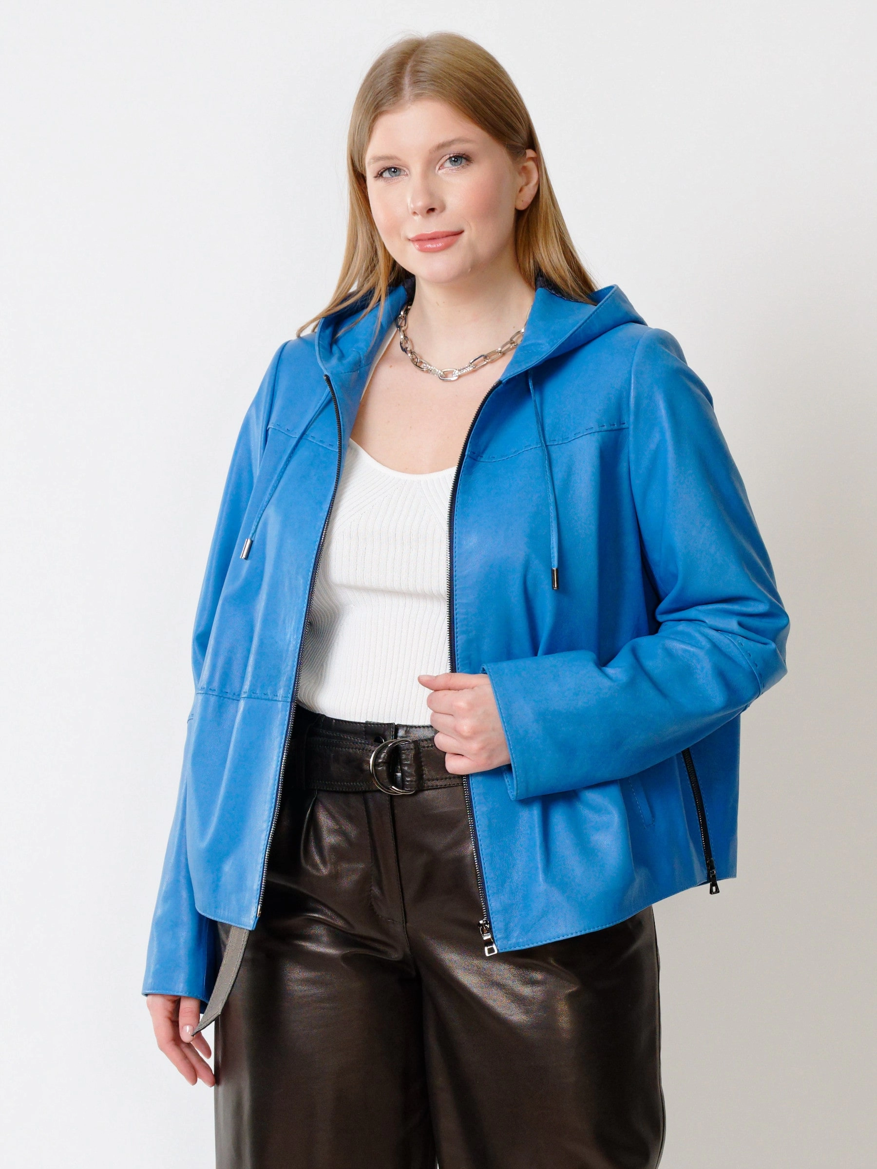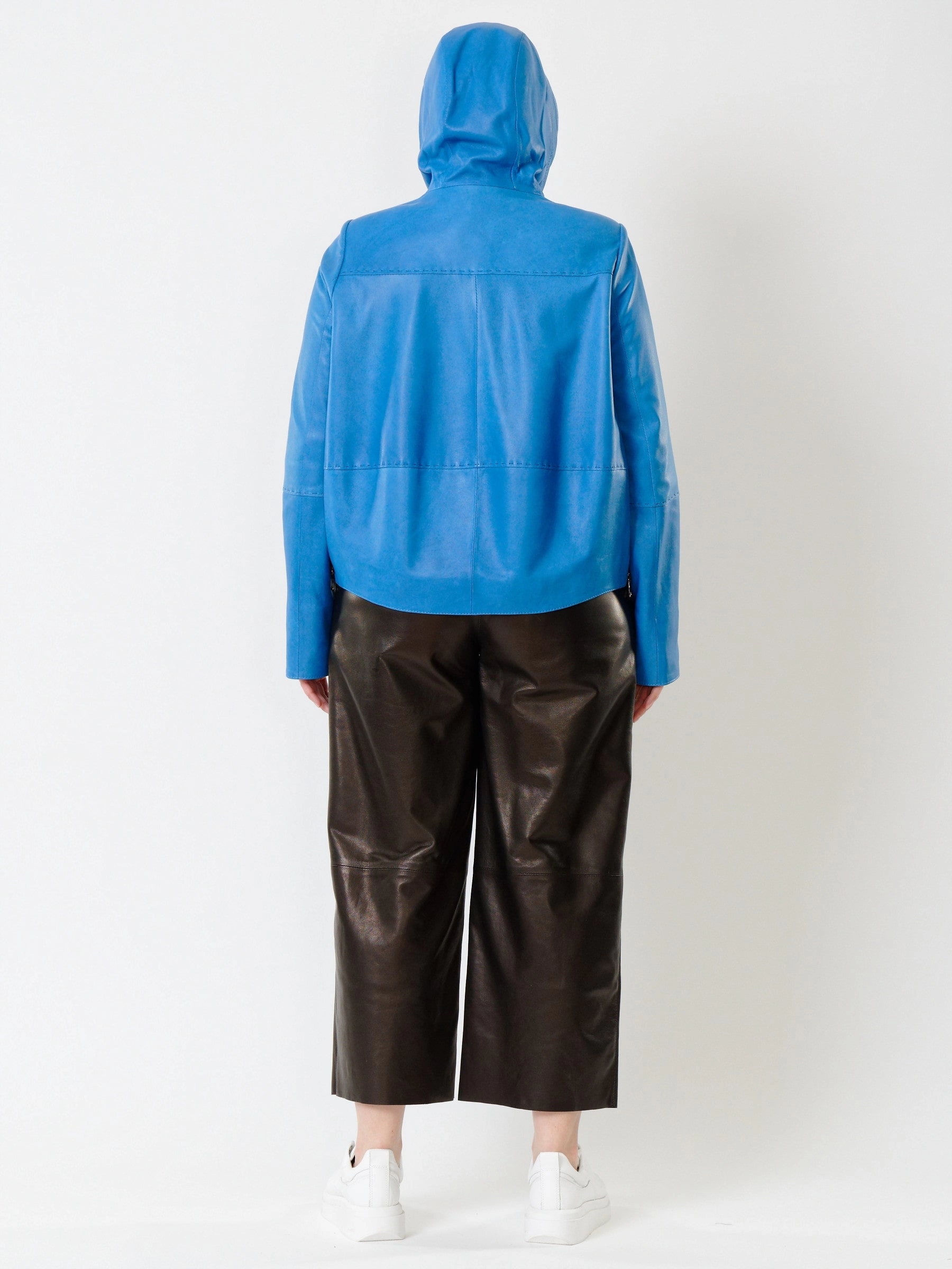 Куртка сшита из органической кожи при выделке и крашении которой использовались исключительно природные компоненты, что делает её гипоаллергенной. Модель украшена настоящим ручным стежком. Удобный капюшон обеспечит дополнительную защиту от ветра. Отличное сочетание с широкими кожаными брюками. Стильный современный образ. Премиальное качество как материалов, так и работы. Возможно индивидуальное исполнение в любых базовых размерах, в любом цвете кожи, имеющемся в наличии.