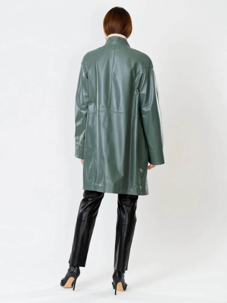Кожаное пальто с воротником-стойкой в благородном цвете олива и кожаные брюки черного цвета. Отличный комплект для весны и осени. Пальто украшено настоящим ручным стежком. Премиальное качество материалов. Возможно индивидуальное исполнение в любых базовых размерах, в любом цвете.