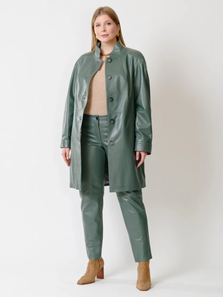 Товар кожаный комплект женский: куртка 378 + брюки 03, оливковый, р. 46, арт. 111159. Рассчитан на сезон: демисезон.