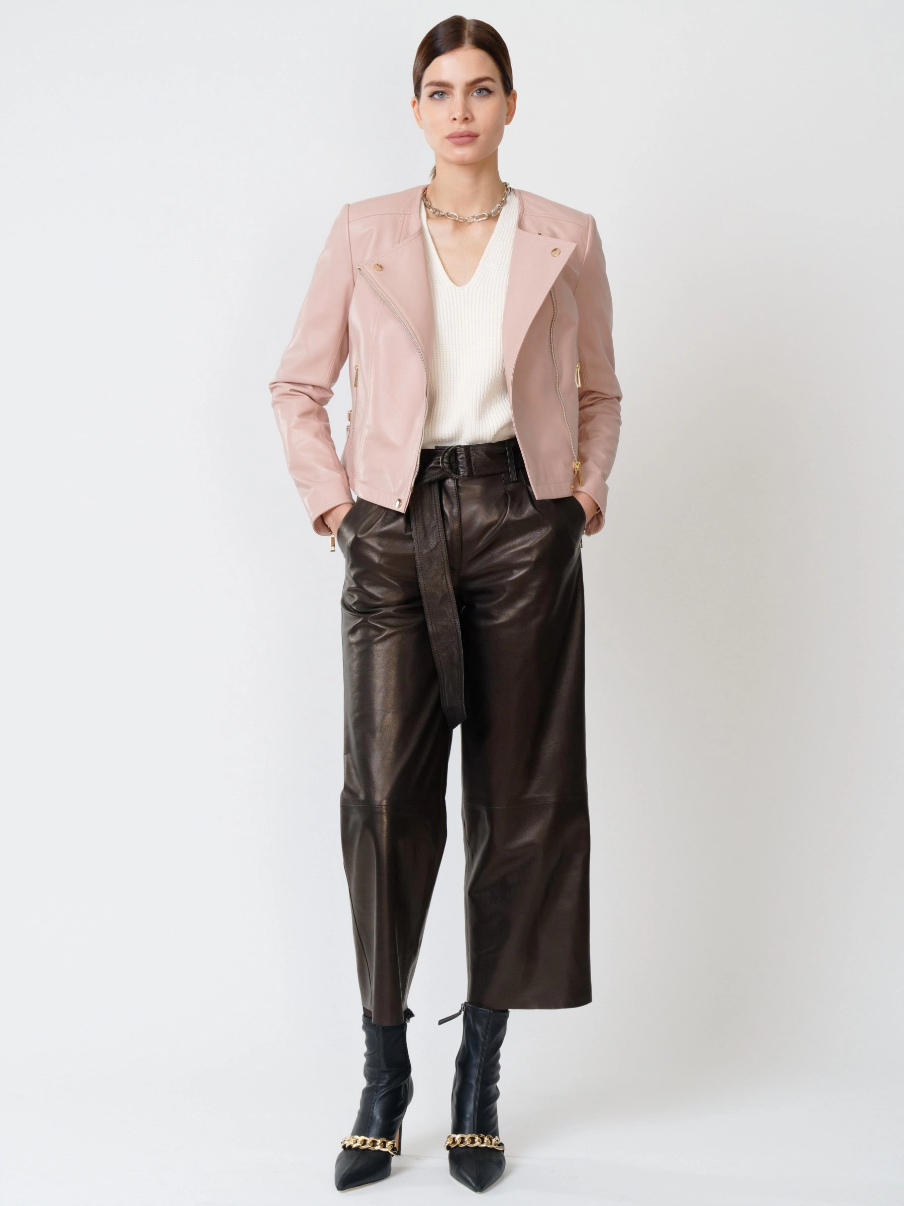 Кожаный комплект женский: Куртка 389 + Брюки 05, пудровый/черный, р. 42, арт. 111115