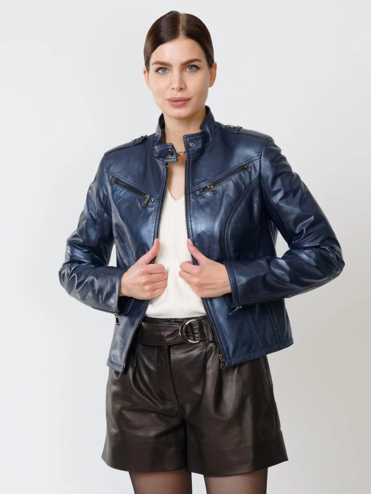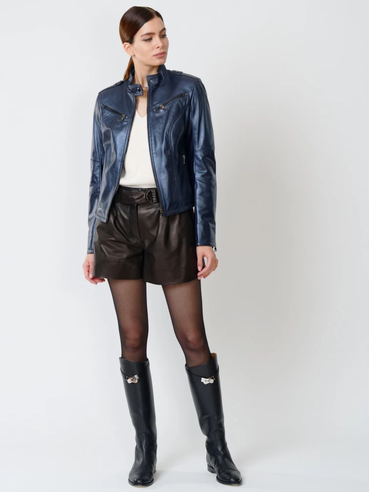 Товар кожаный комплект женский: куртка 399 + шорты 01, синий перламутр/черный, р. 44, арт. 111206.