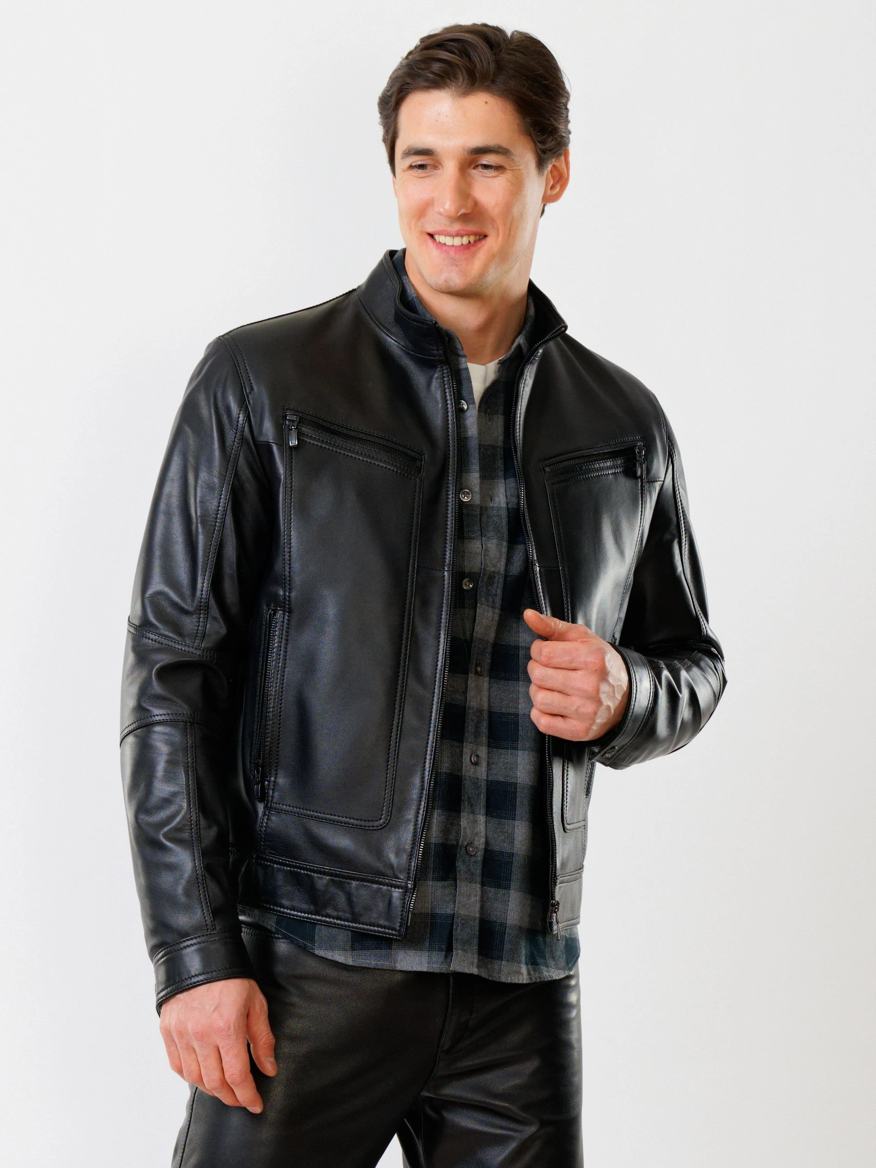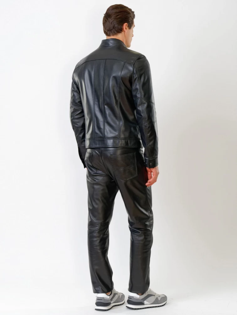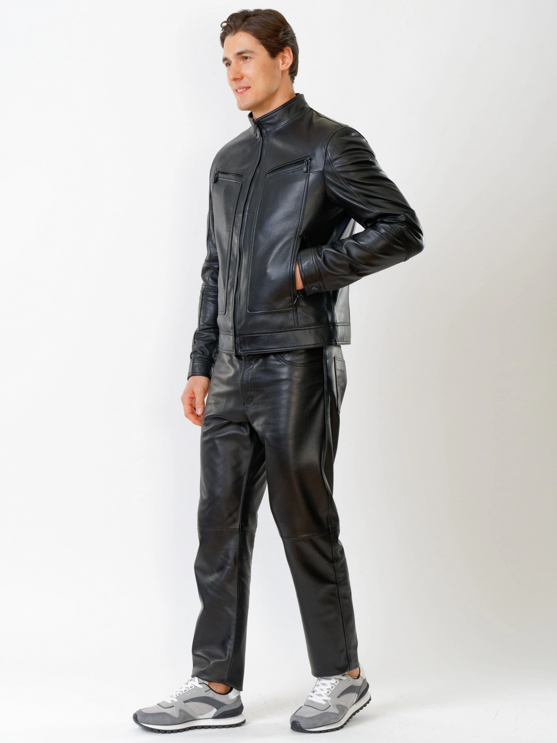 Кожаный комплект мужской: Куртка 507 + Брюки 01, черный, р. 48, артикул 140070