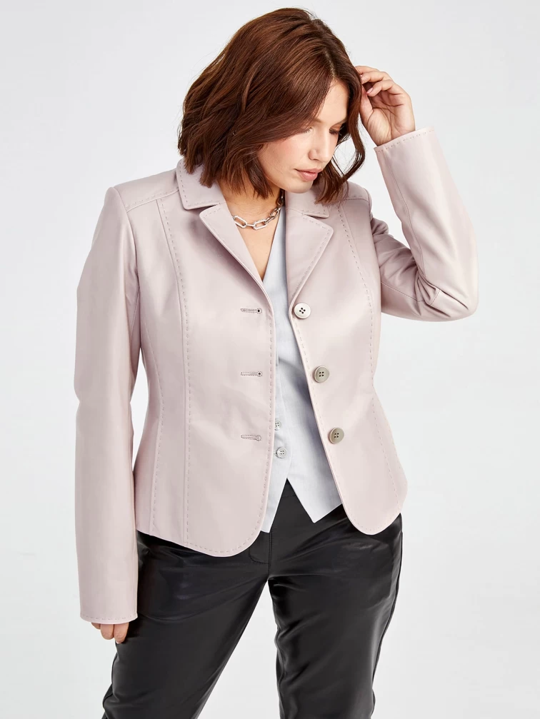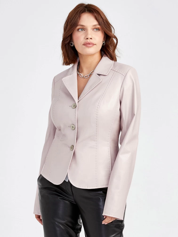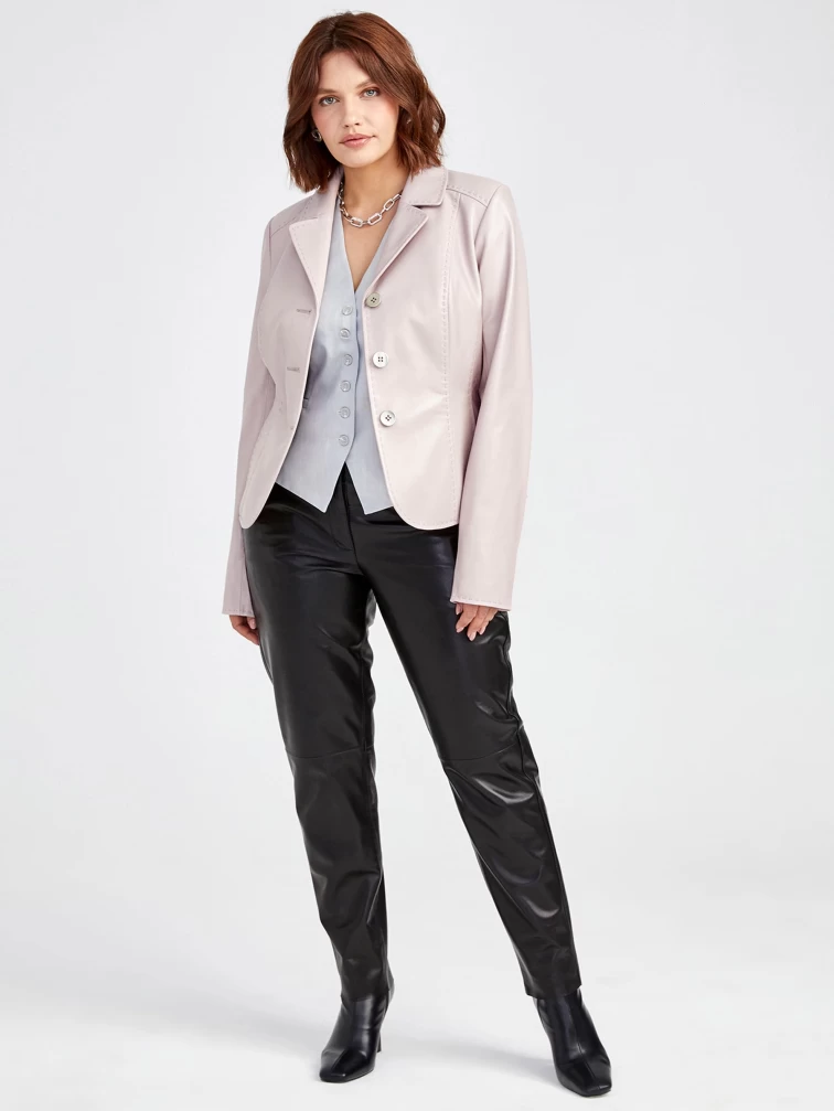 Кожаный костюм женский: Пиджак 316рс + Брюки 03, пудровый/черный, р. 46, арт. 111153