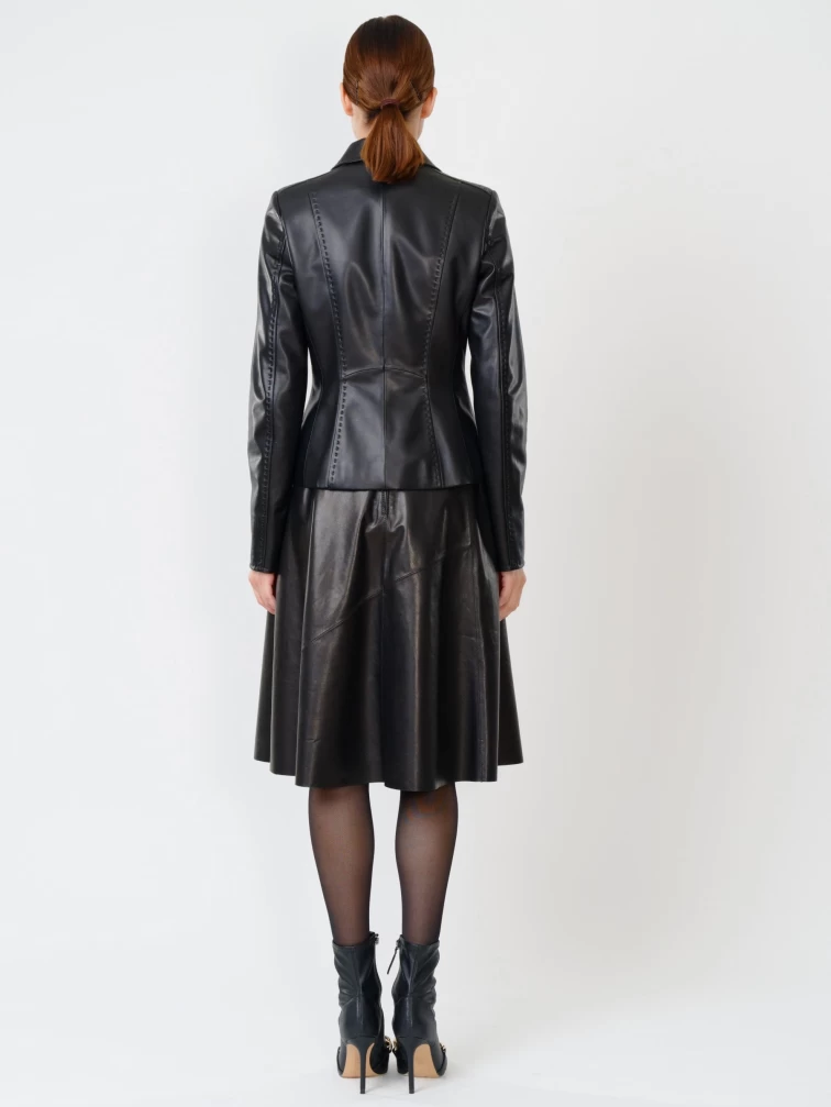 Что может быть круче классического кожаного пиджака украшенного ручным стежком в дуэте с расклешенной юбкой из нежной, мягкой кожи.Универсальность данных моделий заключается в том, что с ними все сочетается. Только комфорт, только высшее качество.