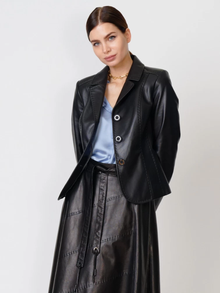 Товар кожаный костюм женский: пиджак 316рс + юбка 01рс, черный, р. 44, арт. 111150. Рассчитан на сезон: весна-лето.