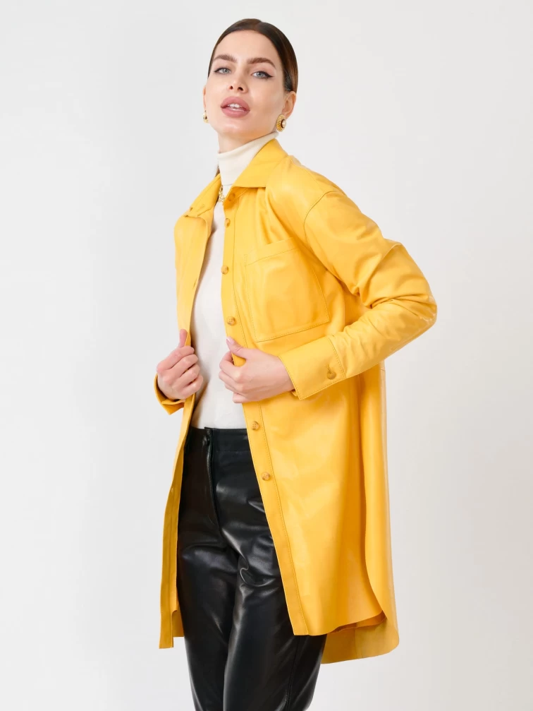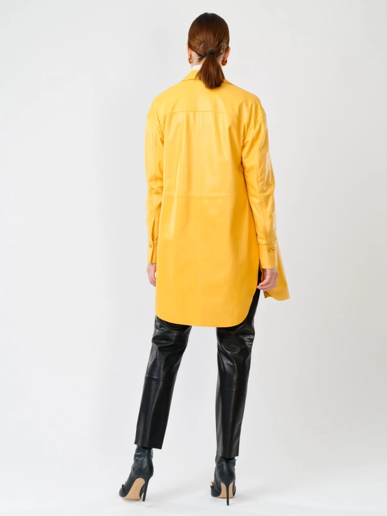 Товар кожаный костюм женский: рубашка 01_1 + брюки 03, желтый/черный, р. 46, арт. 111129. Рассчитан на сезон: весна-лето.