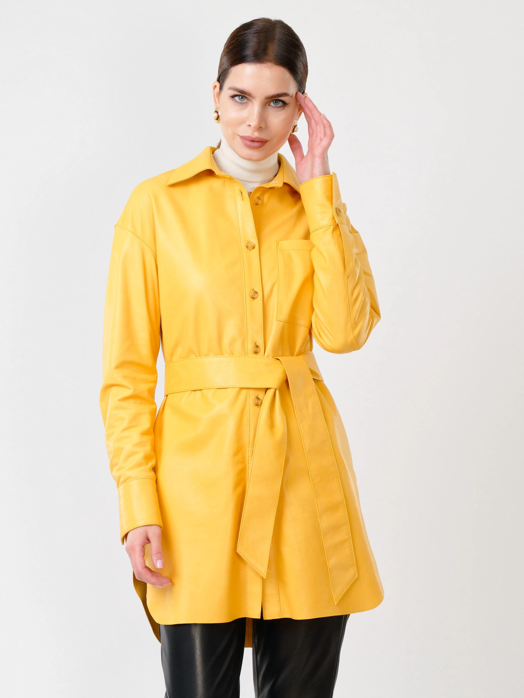 Кожаный костюм женский: Рубашка 01_1 + Брюки 03, желтый/черный, р. 46, арт. 111129