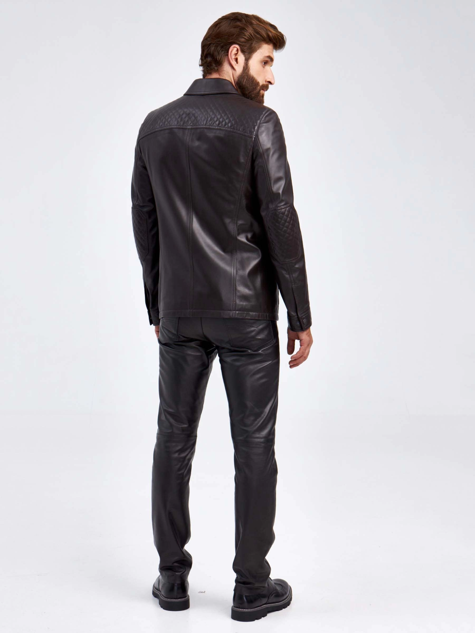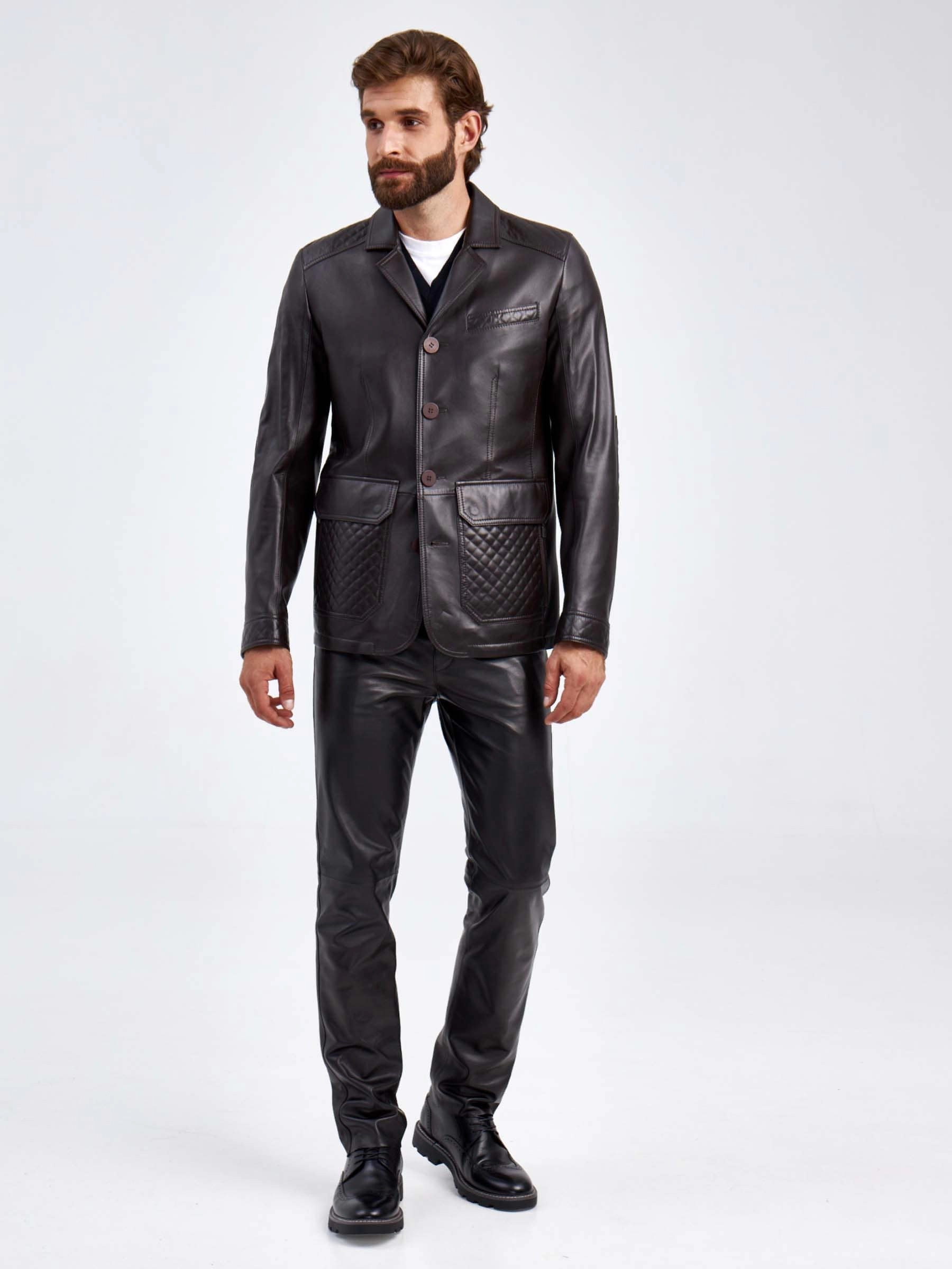 Кожаный костюм мужской: Пиджак 530 + Брюки 01, коричневый/черный, р. 50, арт. 140610