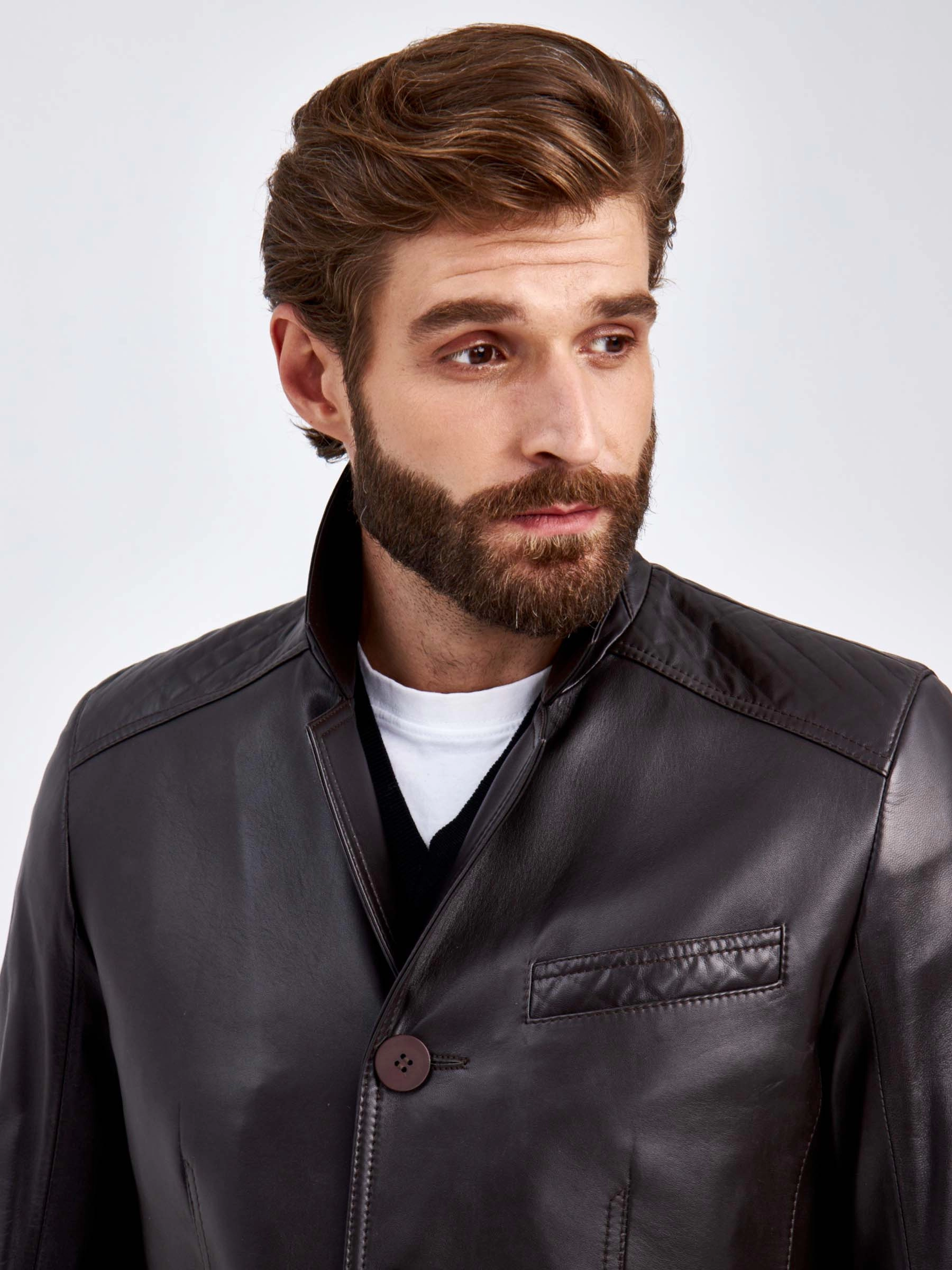 Товар кожаный костюм мужской: пиджак 530 + брюки 01, коричневый/черный, р. 50, арт. 140610 выполнен из натуральной кожи. Рассчитан на сезон: весна-лето.