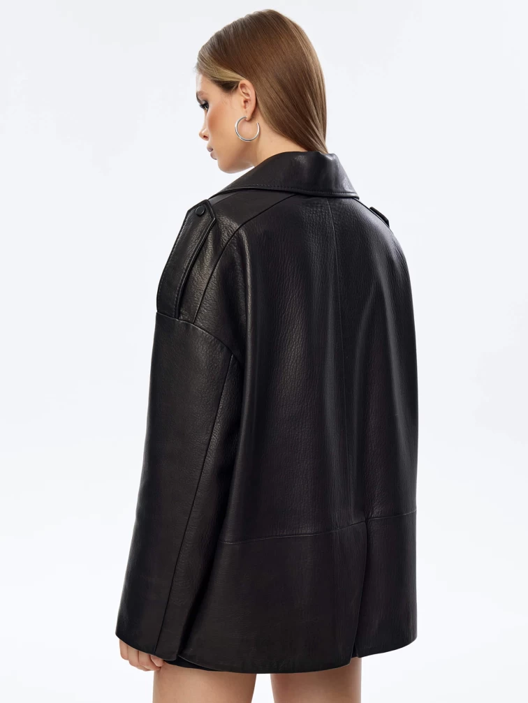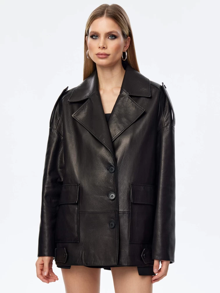 Кожаный пиджак оверсайз для женщин премиум класса 3068, черный, размер 48, артикул 24100