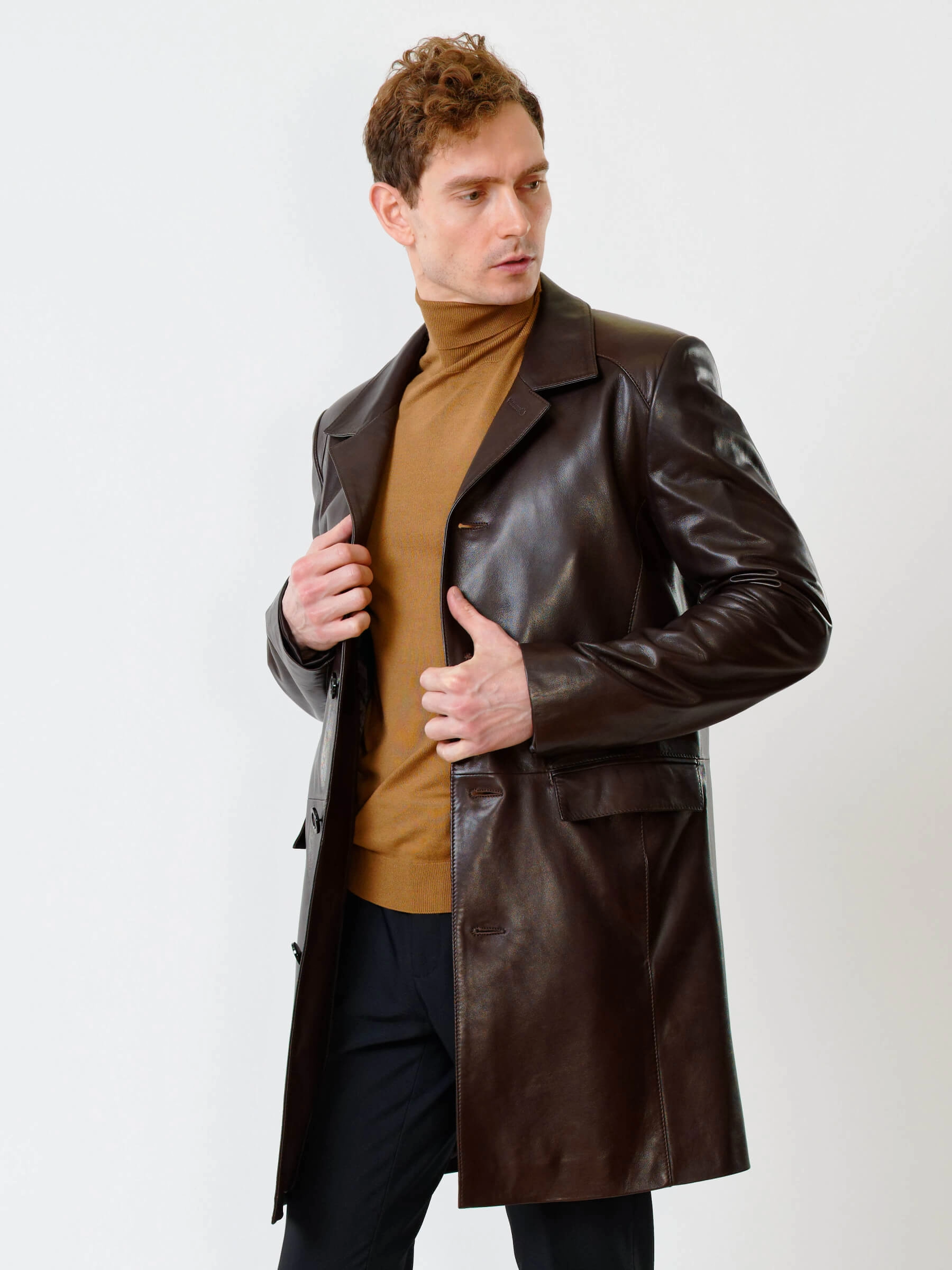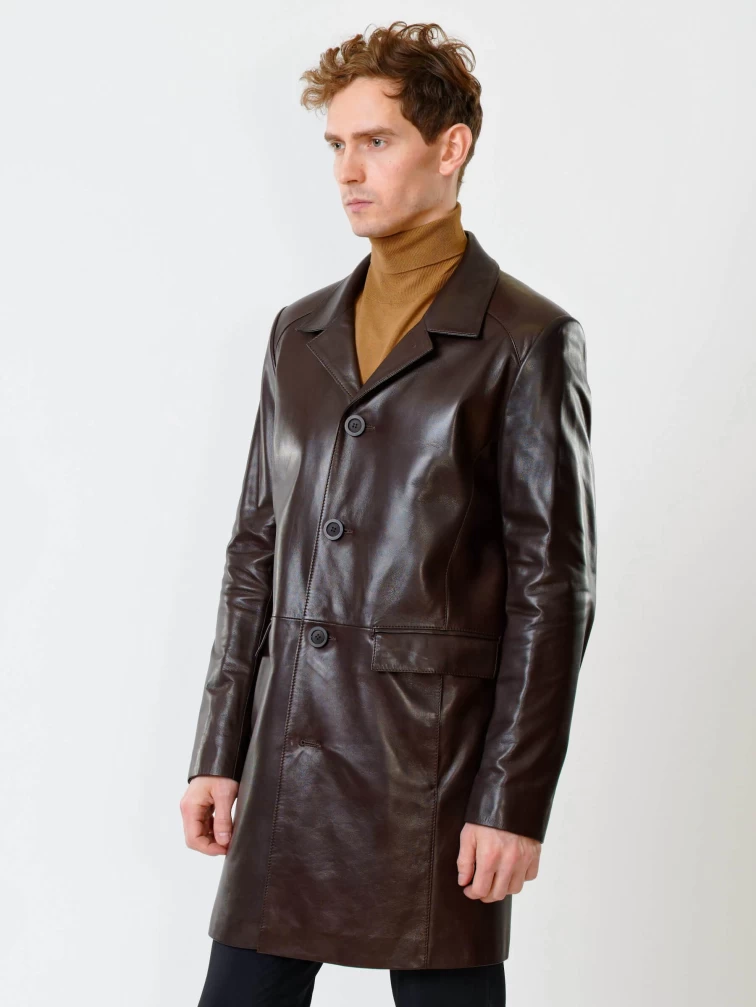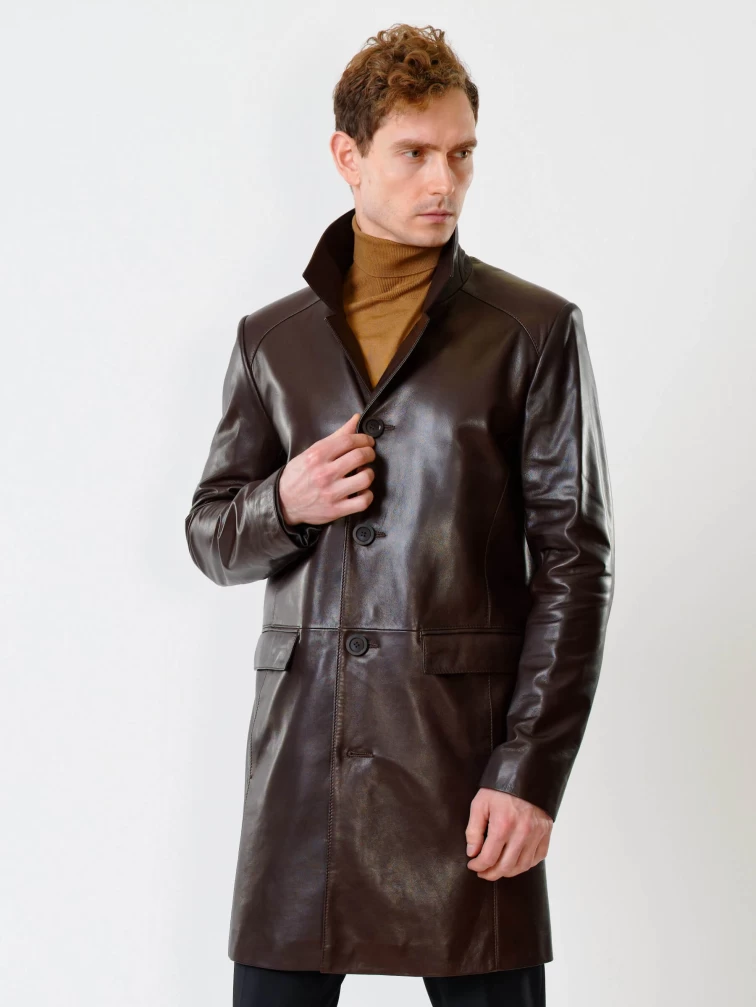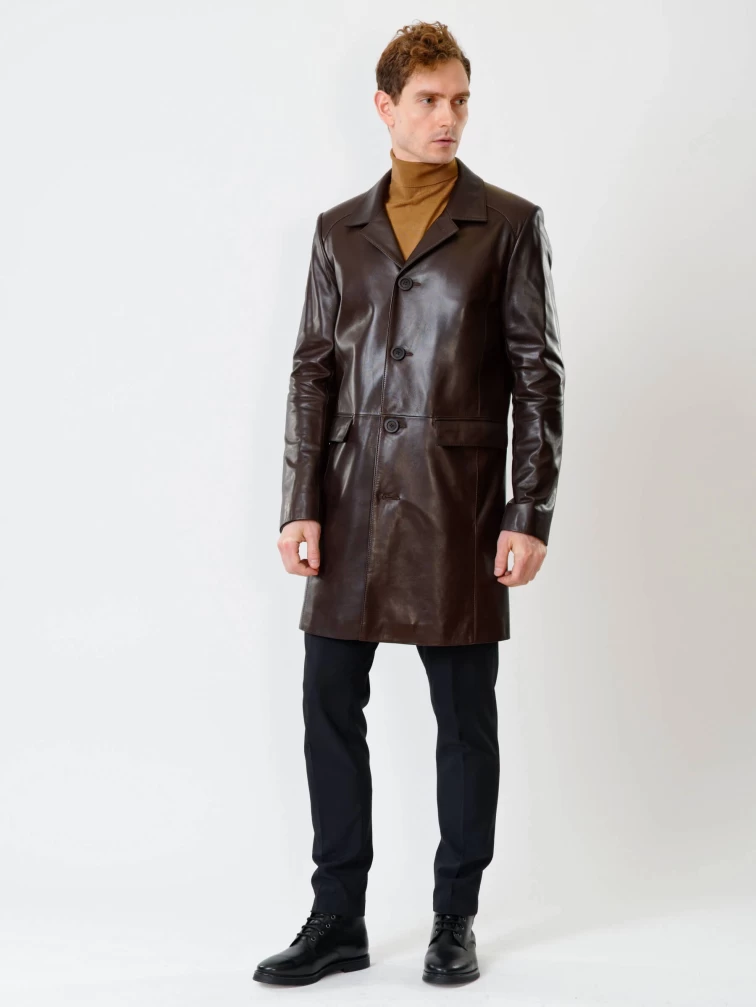 Товар удлиненный кожаный мужской пиджак премиум класса 539, коричневый, размер 50, артикул 29541 выполнен из натуральной кожи с застежкой пуговицы. Рассчитан на сезон: демисезон. Длина изделия 95 см, силуэт полуприлегающий.