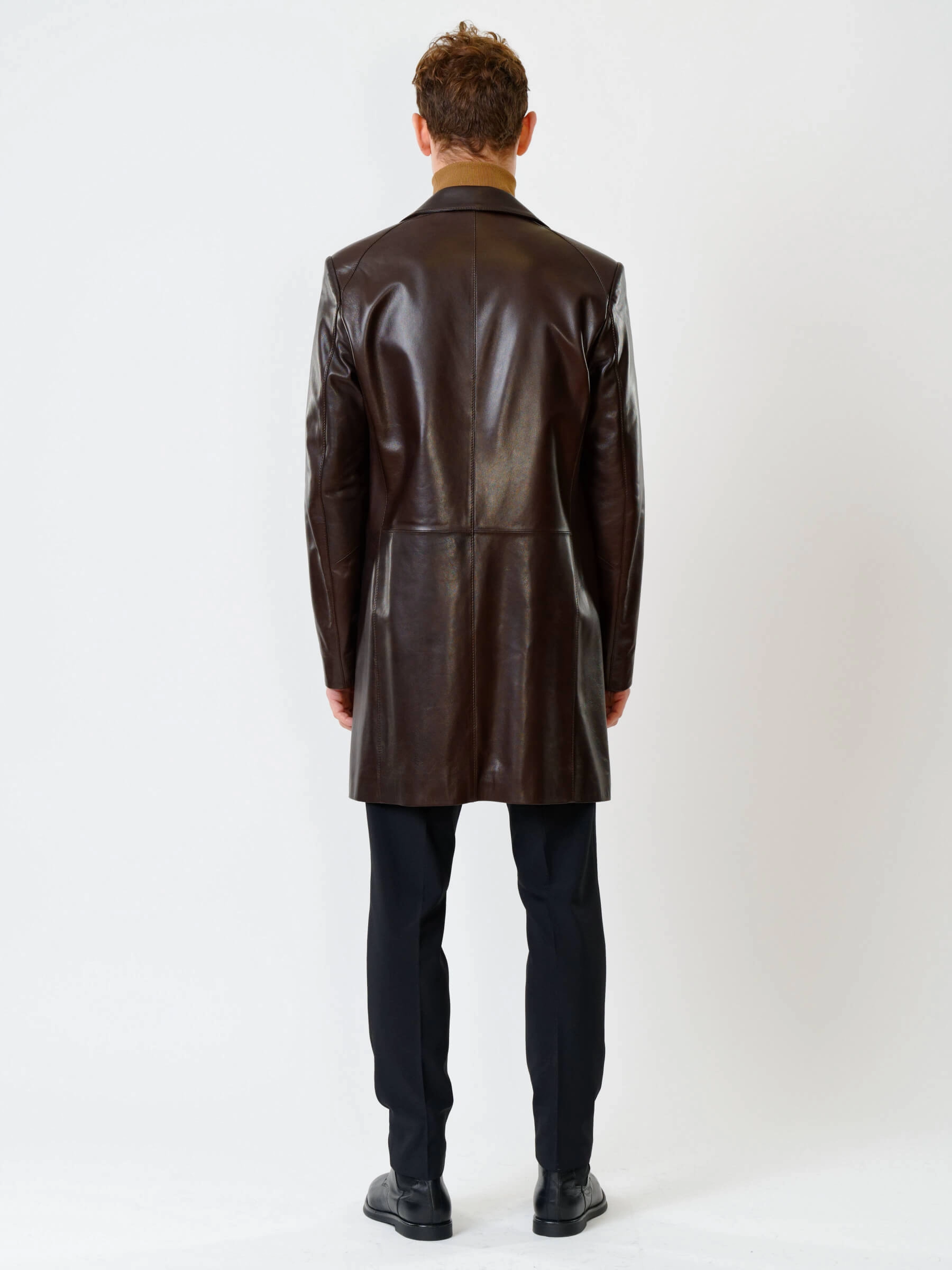Удлиненный кожаный мужской пиджак премиум класса 539, коричневый, размер 50, артикул 29541