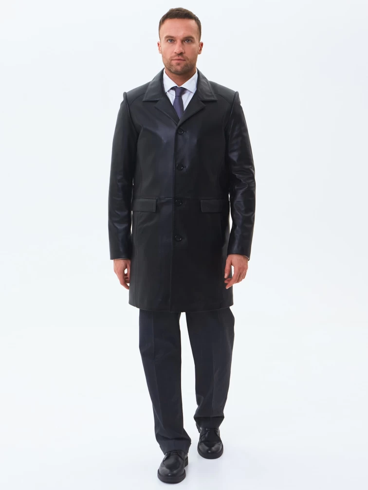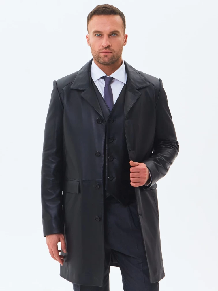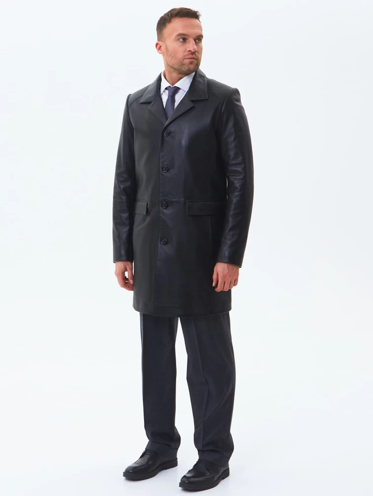 Товар удлиненный кожаный мужской пиджак премиум класса 539, черный, размер 48, артикул 29551 выполнен из натуральной кожи с застежкой пуговицы. Рассчитан на сезон: демисезон. Длина изделия 95 см, силуэт полуприлегающий.