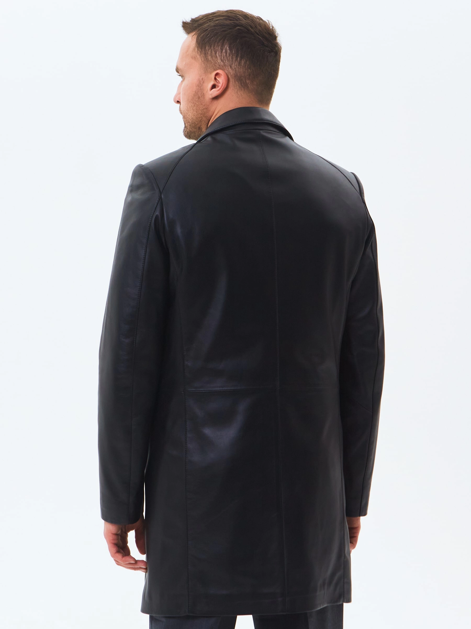 Удлиненный кожаный мужской пиджак премиум класса 539, черный, размер 48, артикул 29551
