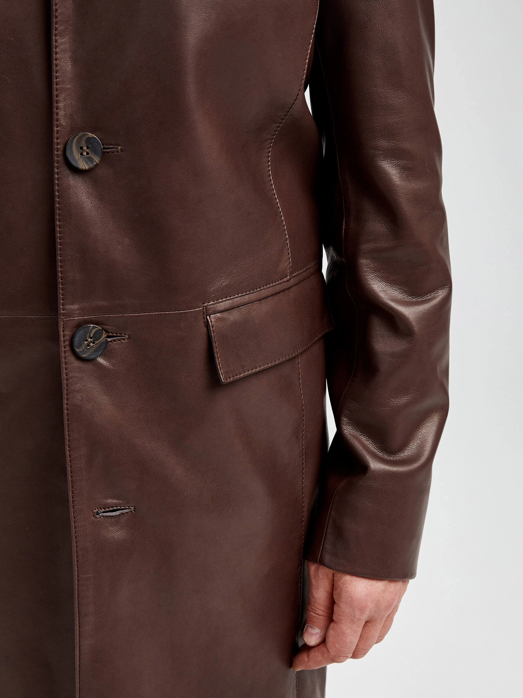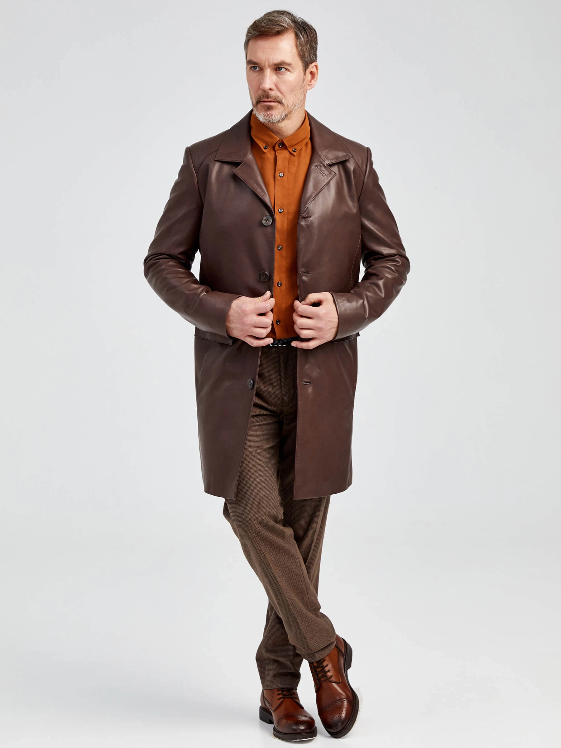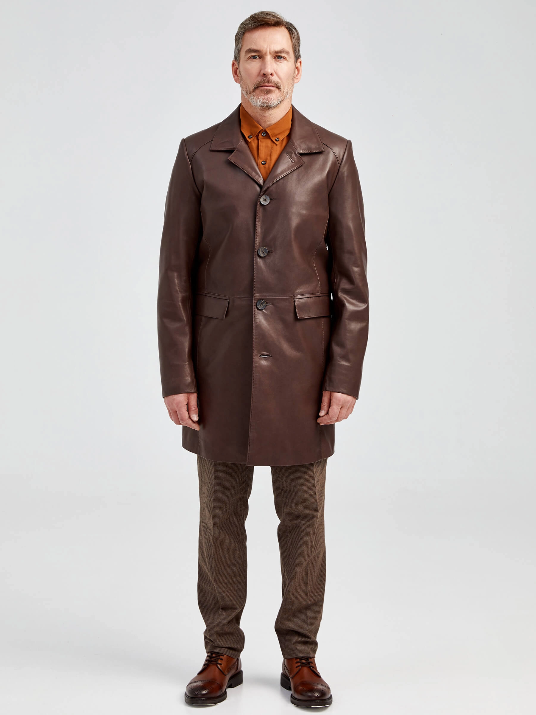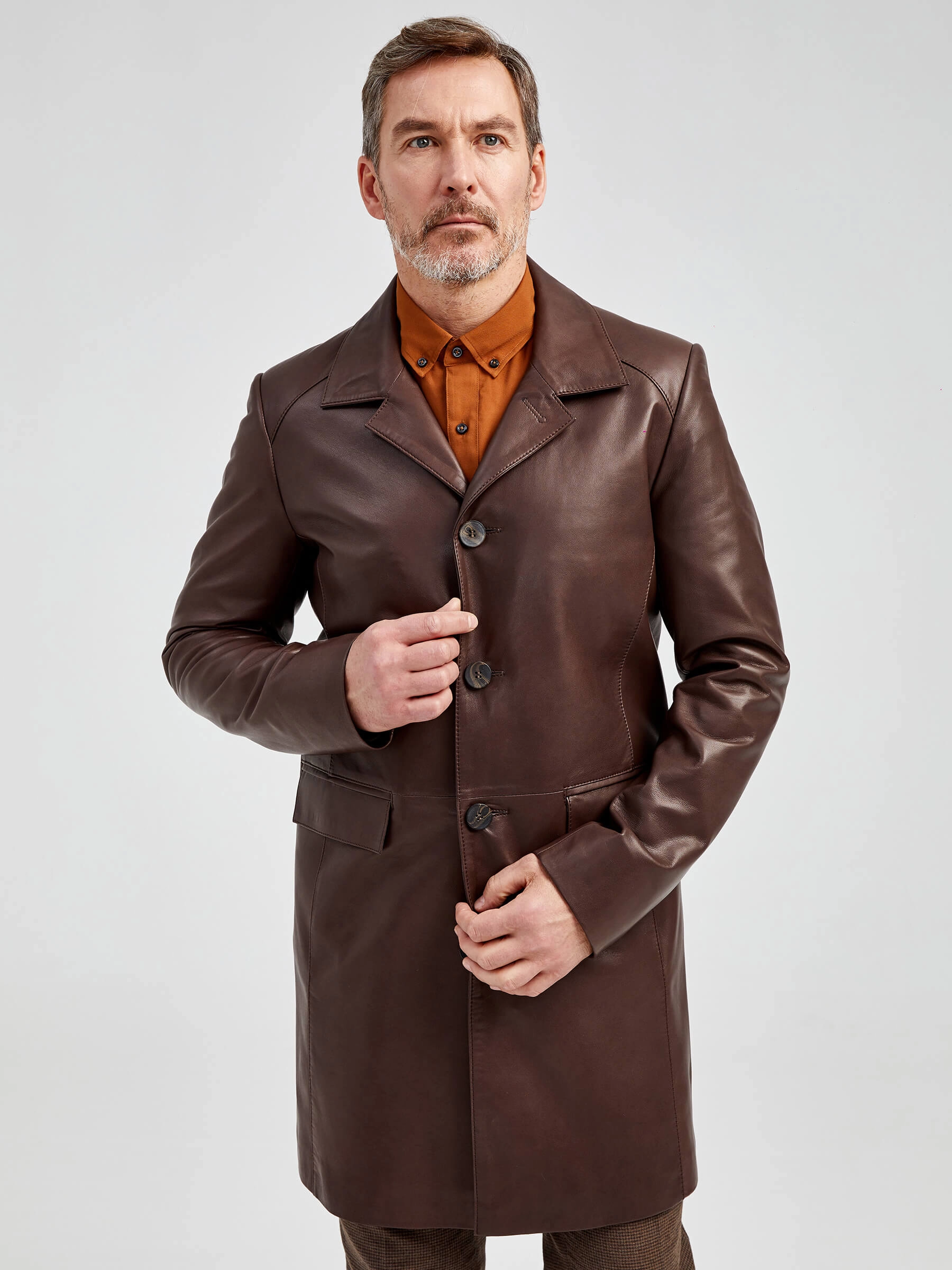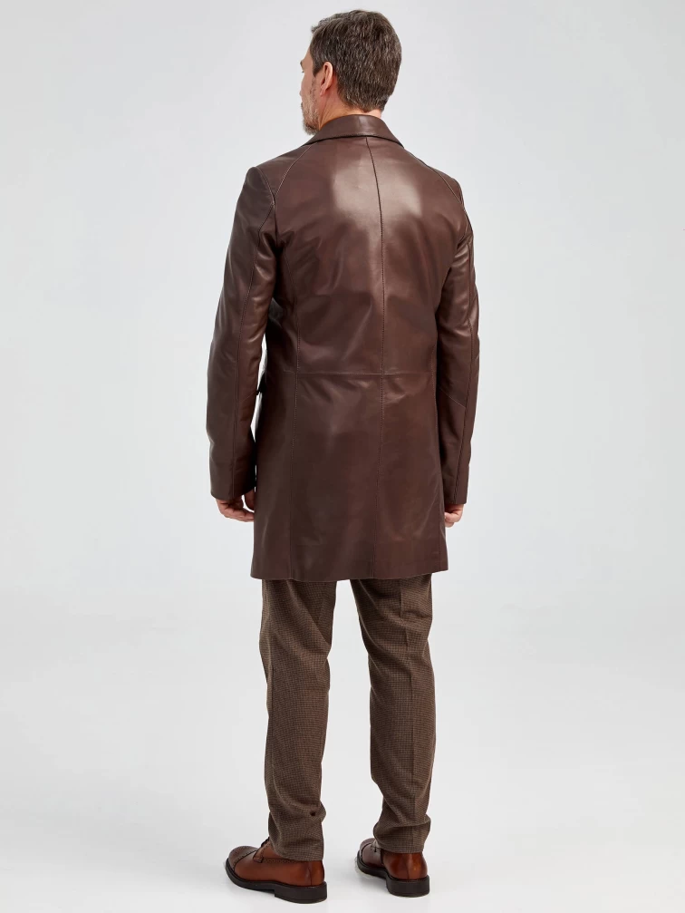 Удлиненный кожаный мужской пиджак премиум класса 539, коричневый, размер 50, артикул 29542