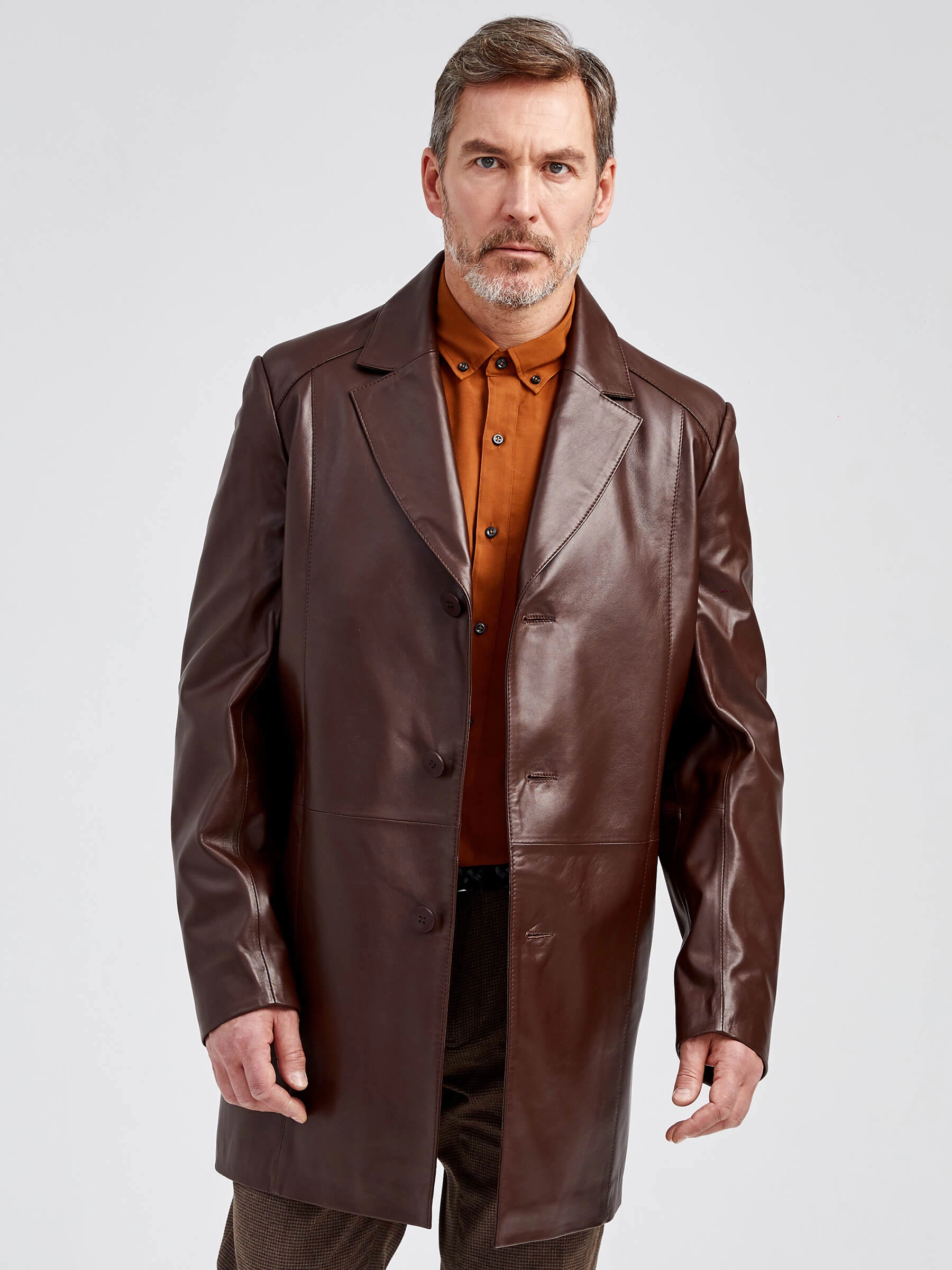 Товар кожаный пиджак удлиненный премиум класса для мужчин 541, коричневый, размер 48, артикул 29531 выполнен из натуральной кожи с застежкой пуговицы. Рассчитан на сезон: демисезон. Длина изделия 91 см, силуэт прямой.
