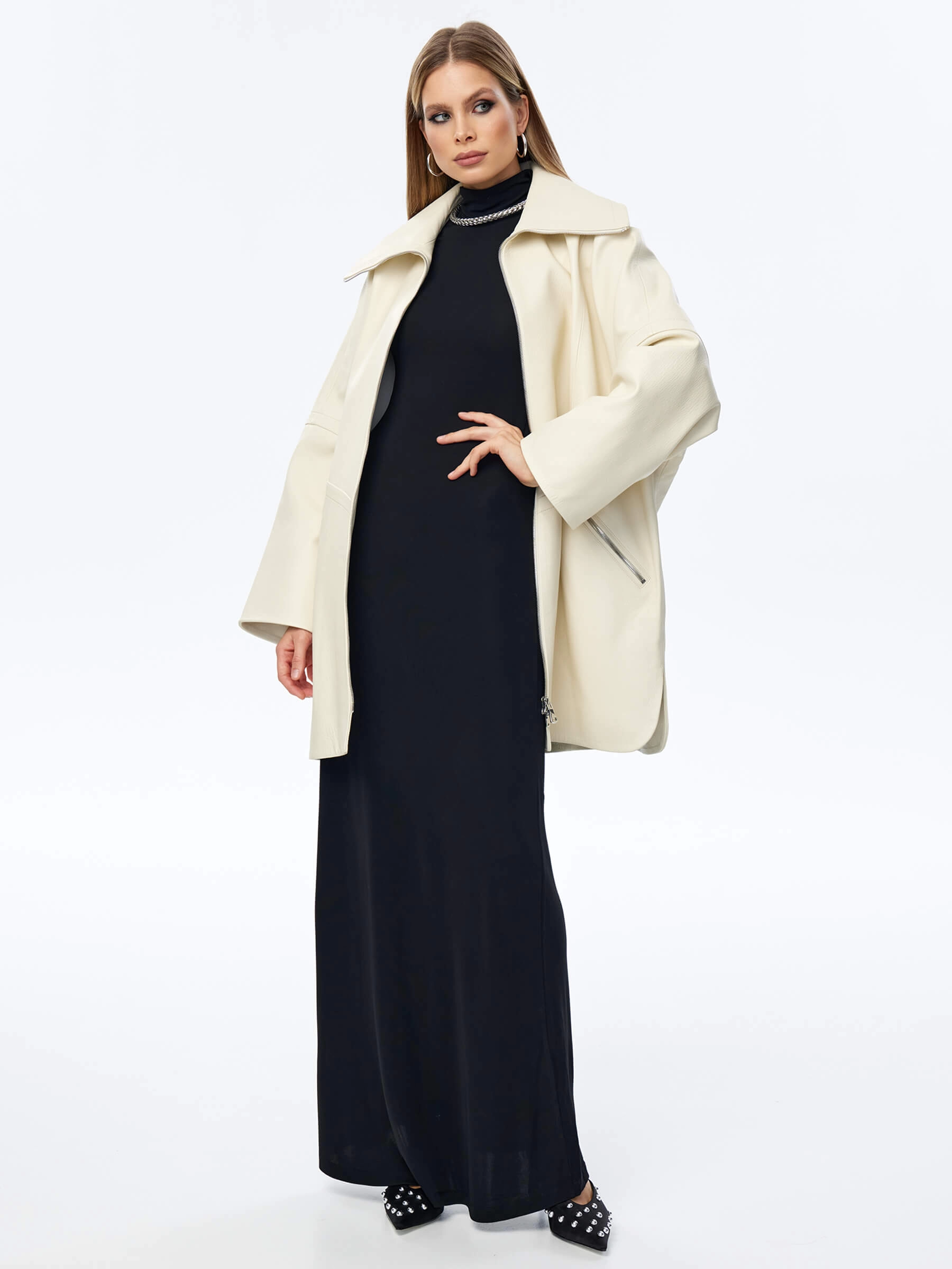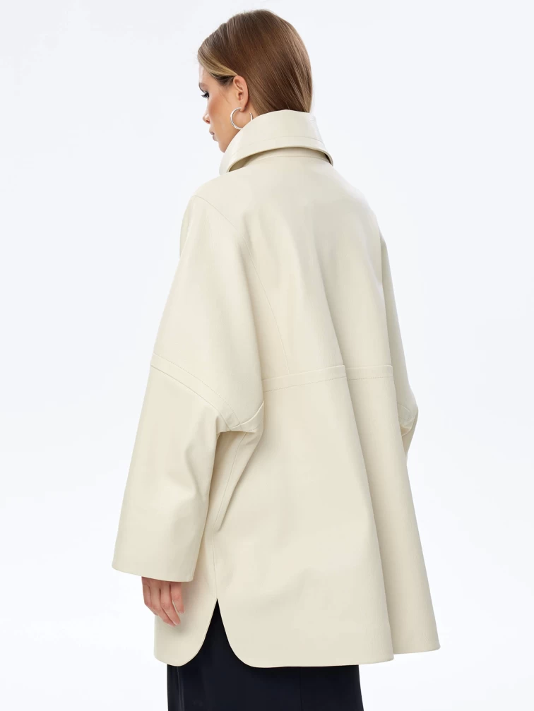 Кожаный плащ оверсайз на молнии для женщин премиум класса 3057, белый, размер 50, артикул 23530