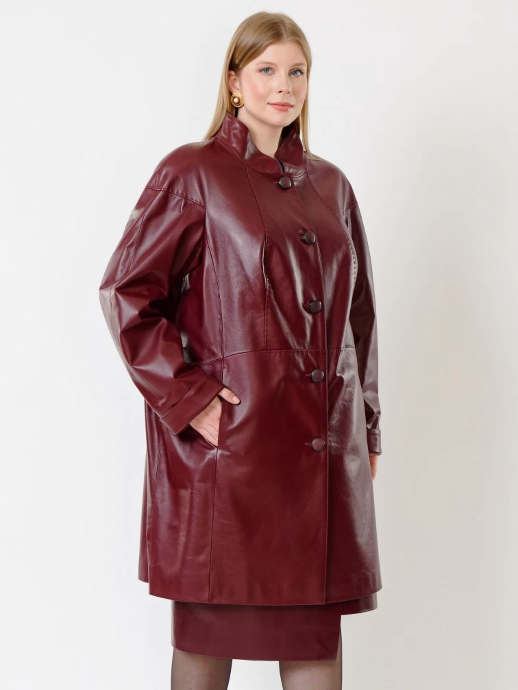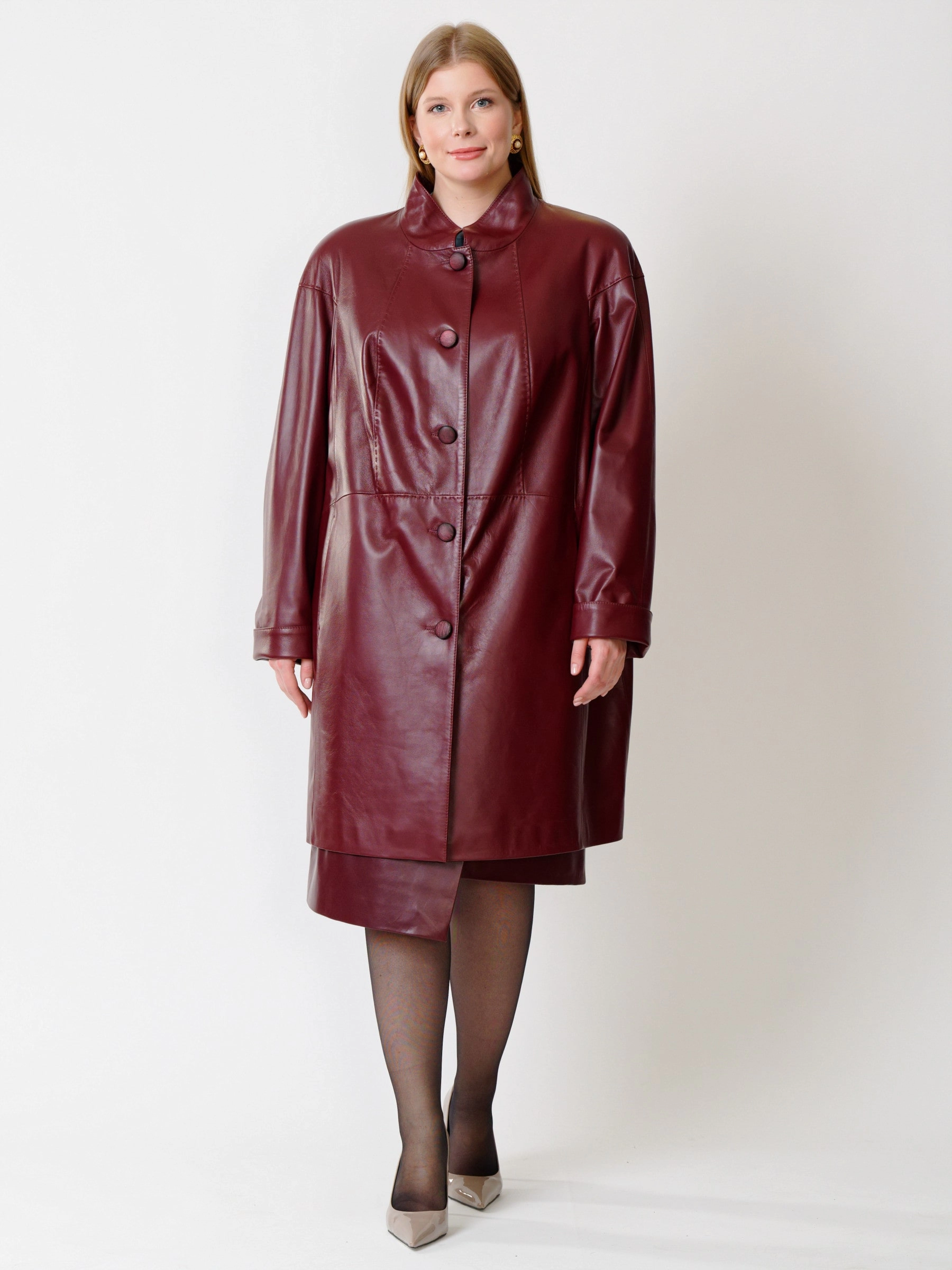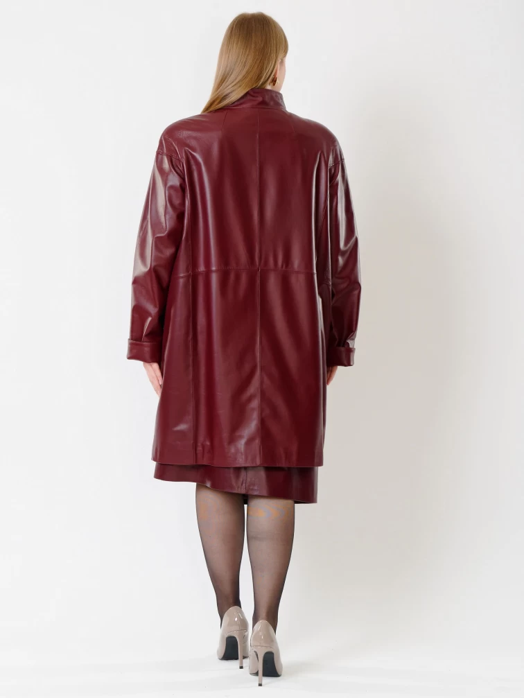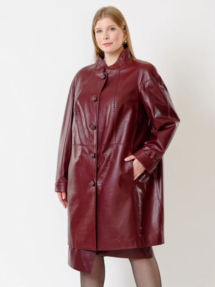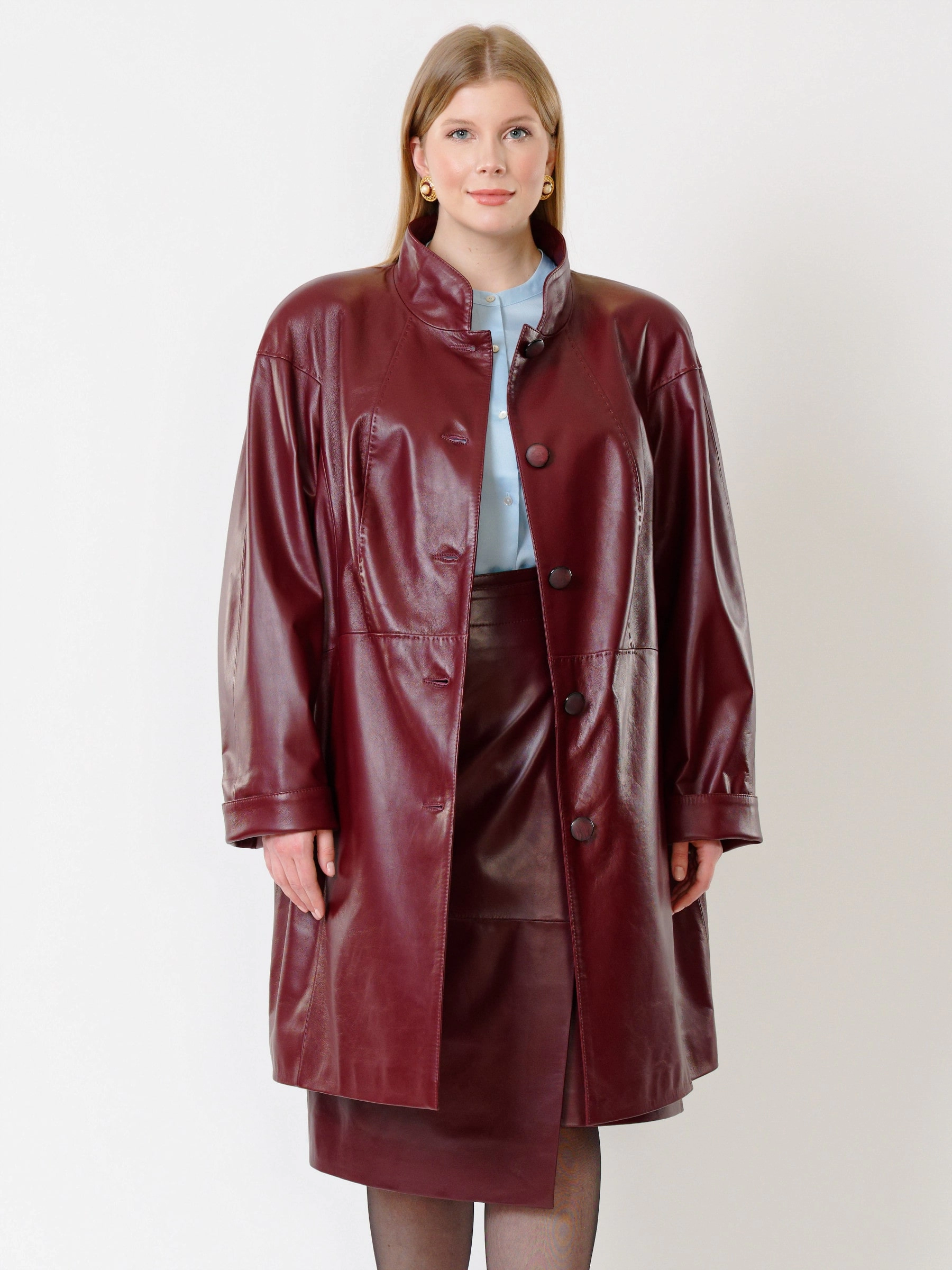 Кожаный женский плащ 378, бордовый, размер 58, артикул 91980
